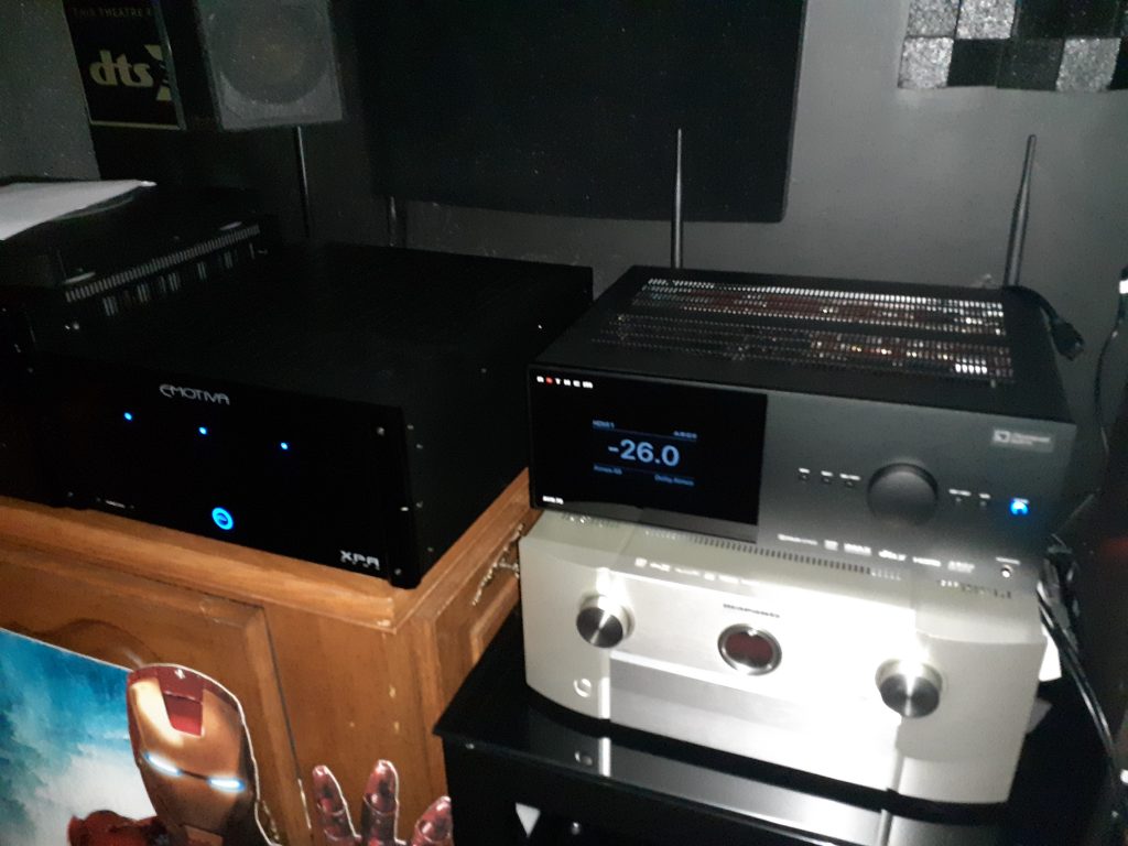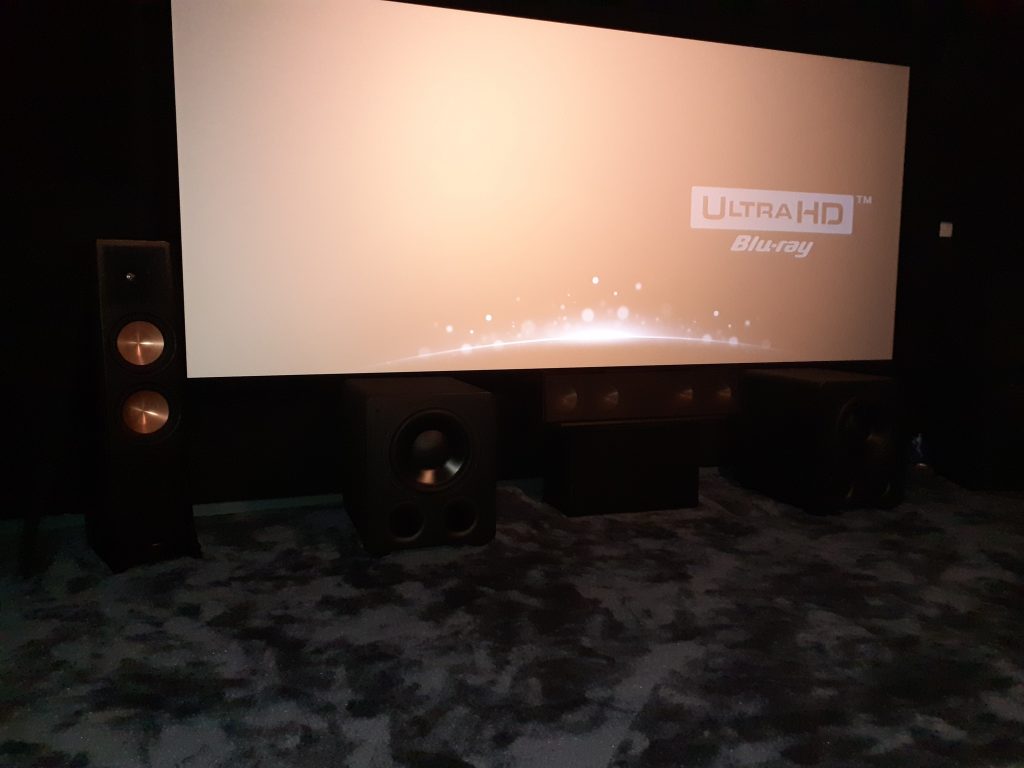Ce calibrage de l’Anthem AVM70 s’accompagne de 2 amplis Rotel et 2 amplis Emotiva pour alimenter tous les canaux. Les enceintes sont en majorité des Klipsch sauf pour 4 atmos en SA Saxo 6. Les caissons sont tous des SVS Pro dont un PB16 en possition arrière. Le tout en salle dédiée avec traitement acoustique.
