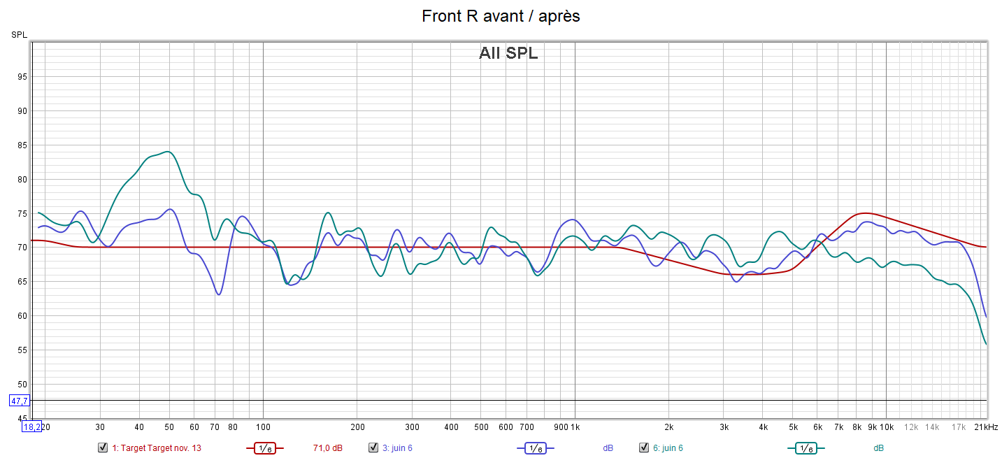Ci-dessous la correction des canaux front droite, la centrale, surround gauche et Surround arrière droite, atmos arrièer droite et LFE.