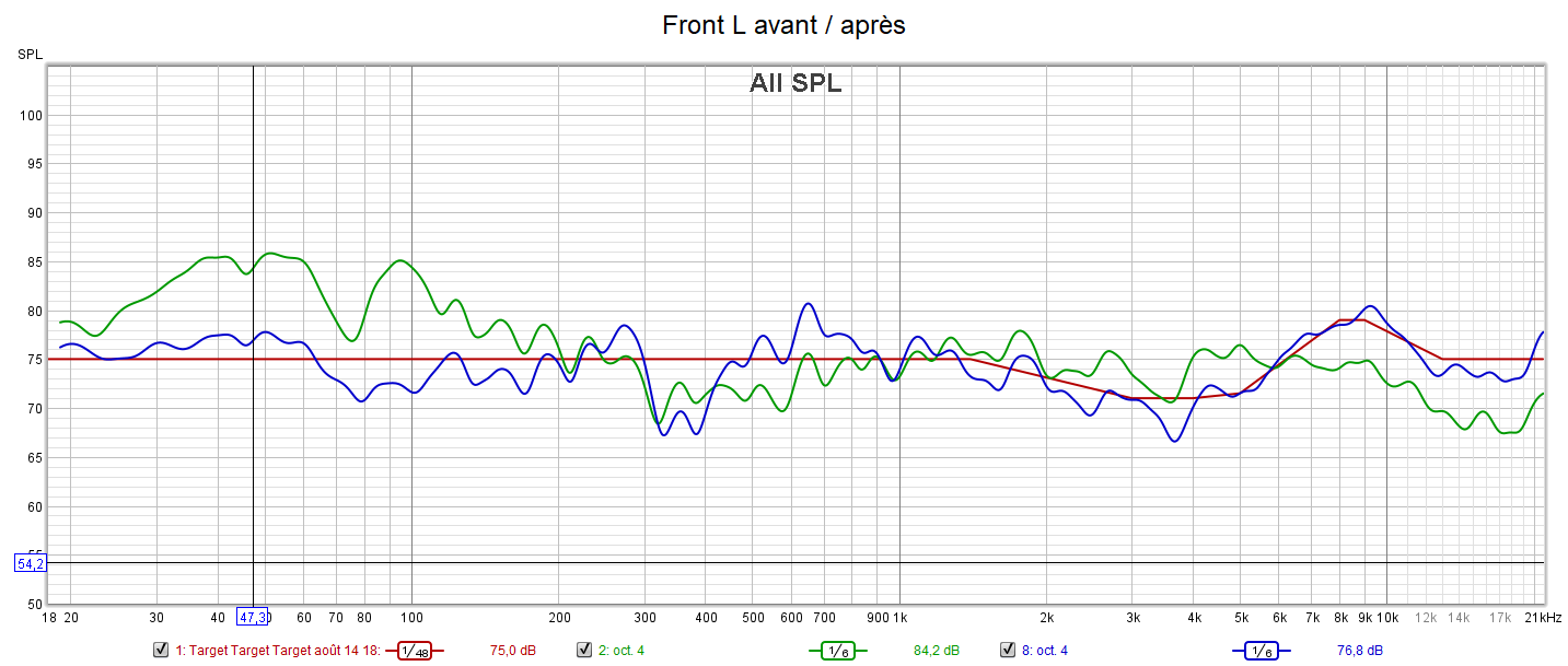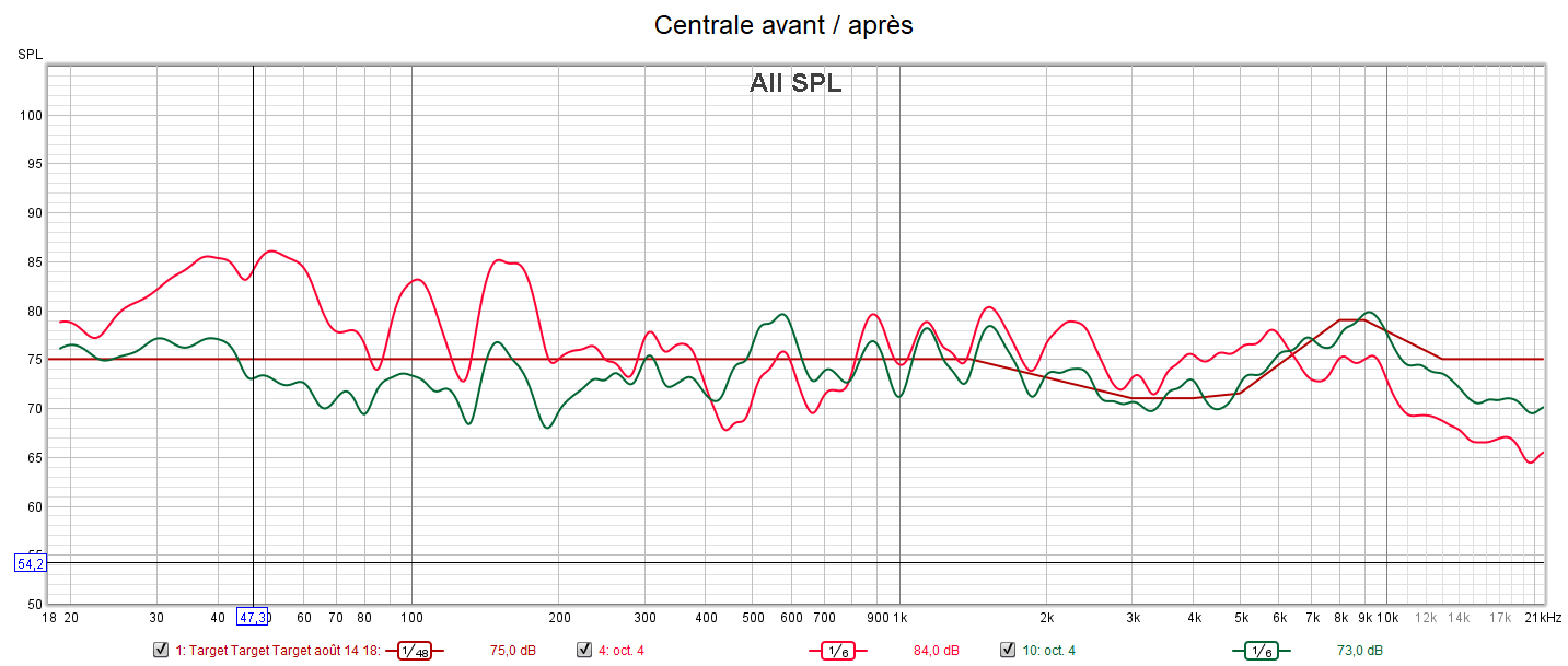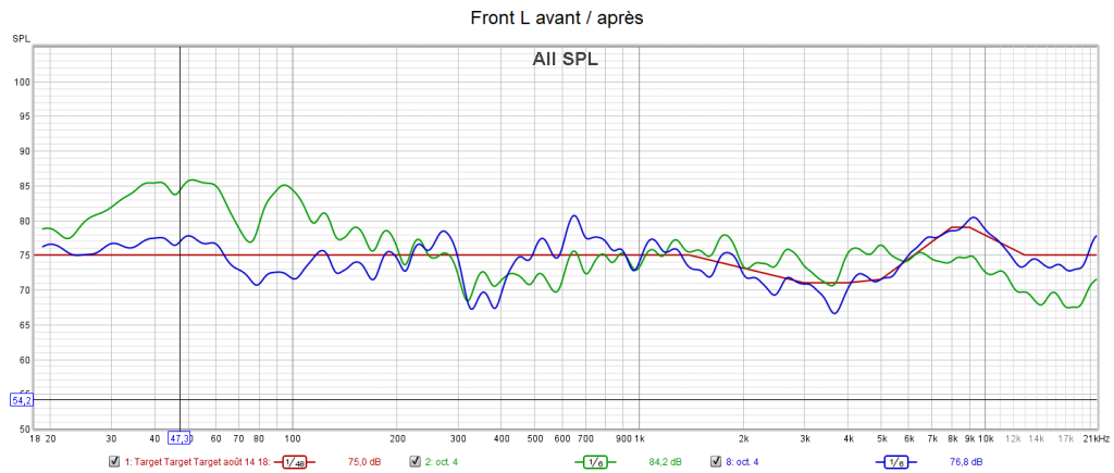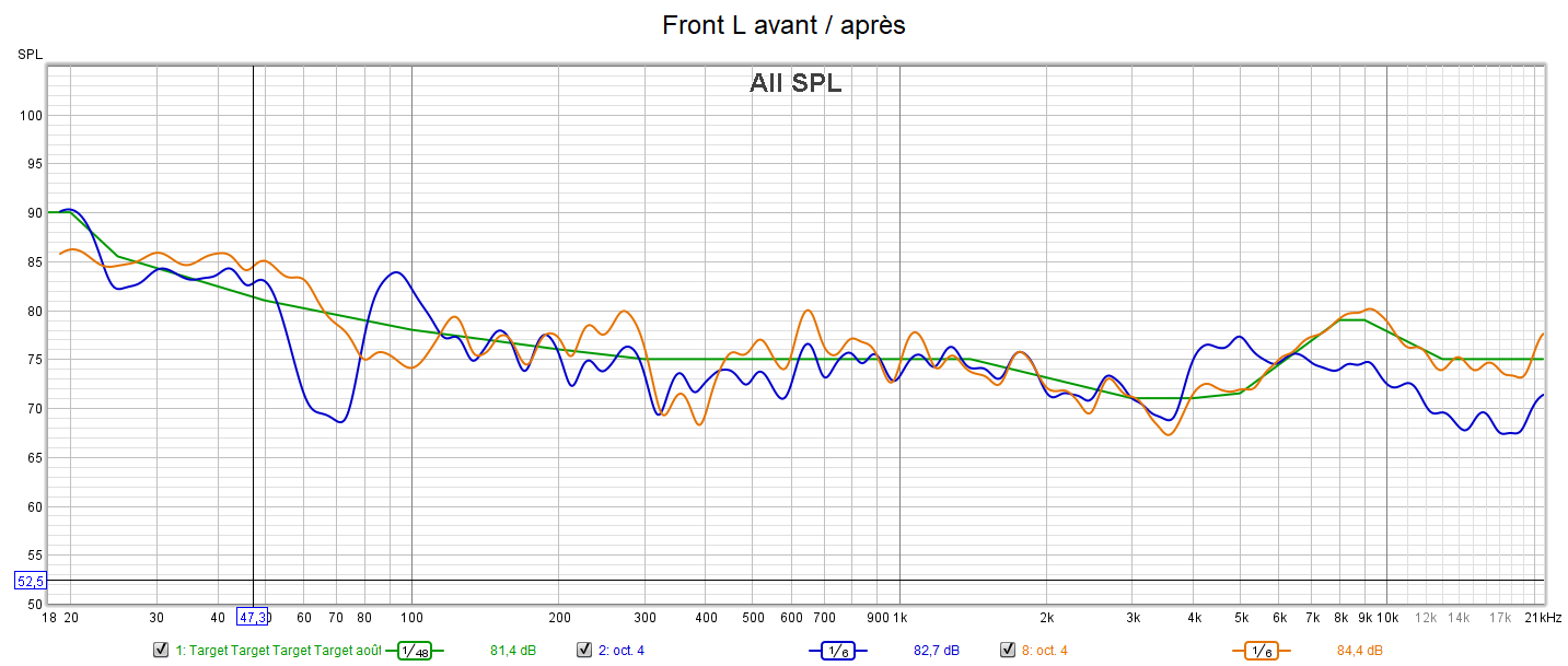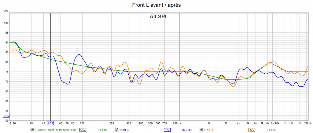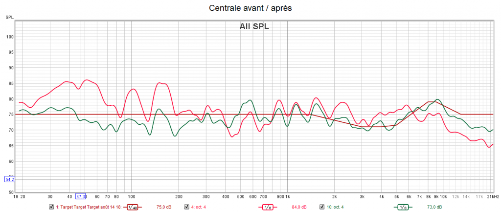 Ci-dessous la correction de la frontale gauche et la centrale en home cinéma puis les frontales gauche et droite en HiFi 5.1.