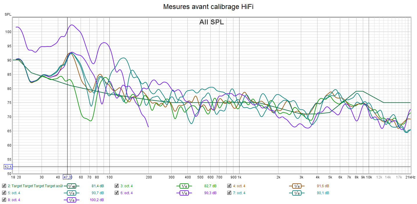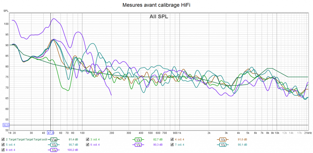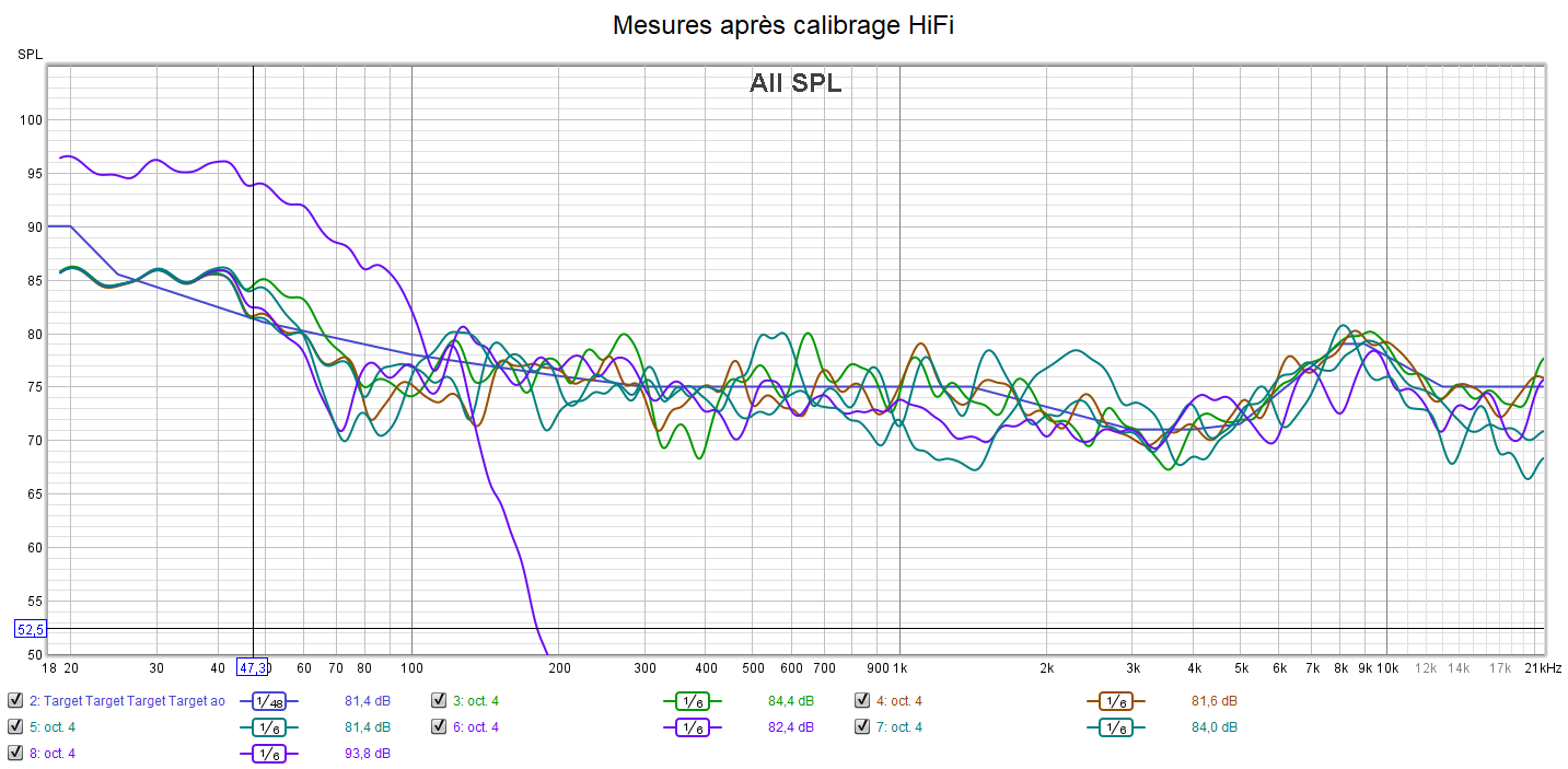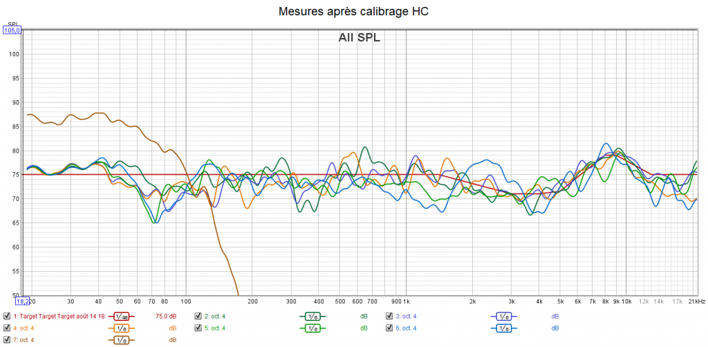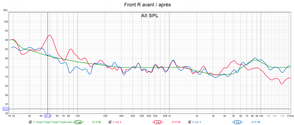 Ci-dessous la correction de la frontale gauche et la centrale en home cinéma puis les frontales gauche et droite en HiFi 5.1.