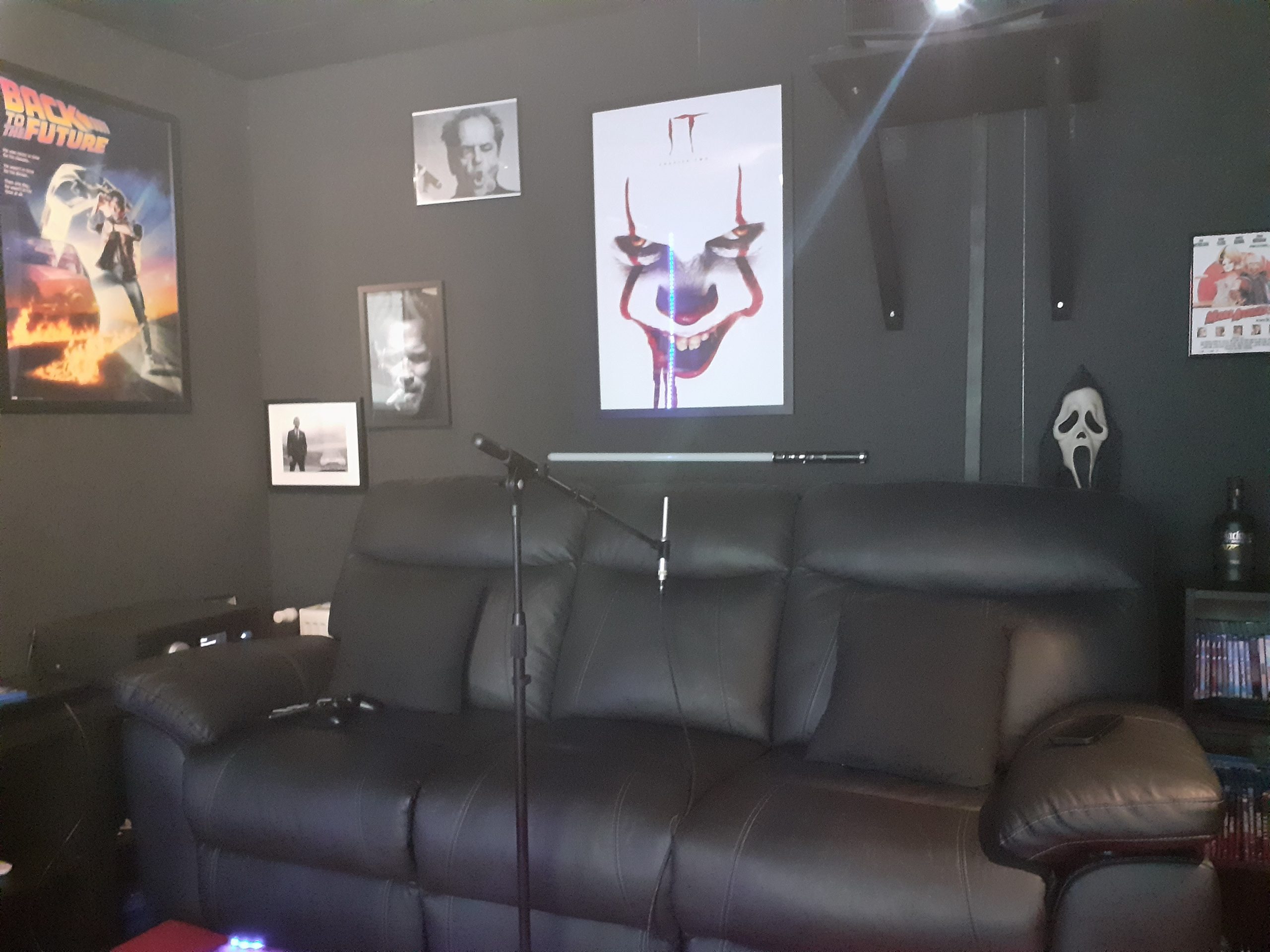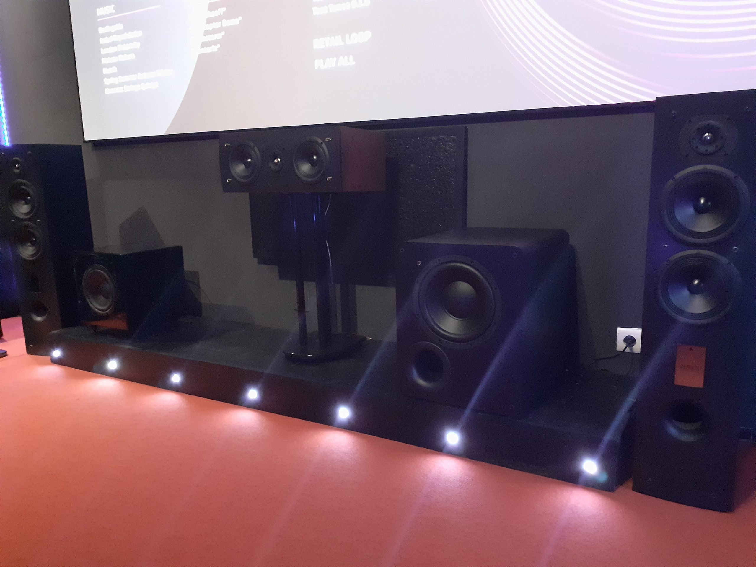 Nous sommes en pièce dédiée sur l’ampli Arcam AVR11. Les enceintes de la scène frontale sont des Triangle, les atmos également. Les surround sont des Monitor Audio. On a un premier caisson Triangle Meteor 0.1 TC avec un deuxième SVS PB1000.