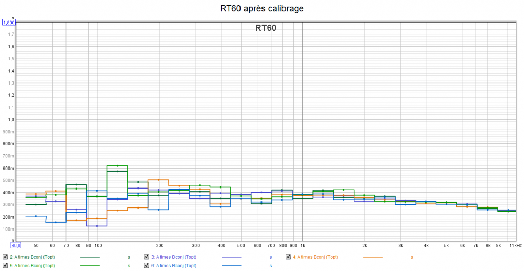Niveau acoustique et réverbération, on est à la limite des 400 millisecondes pour le RT60. Une bonne moquette serait parfaite pour la pièce. Côté distorsion : RAS. Les valeurs sont conformes aux valeurs habituelles. On n’oublie pas que l’acoustique c’est 50% du rendu.