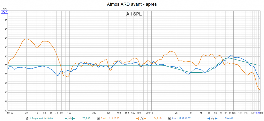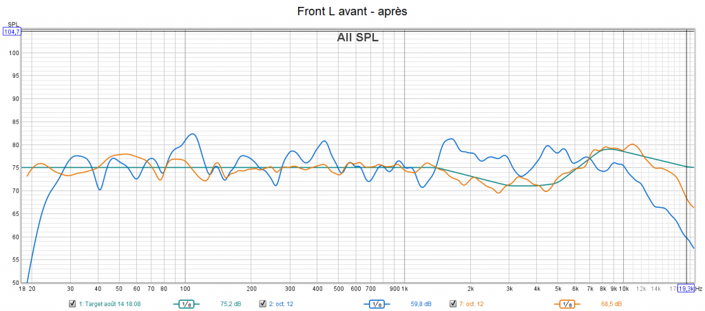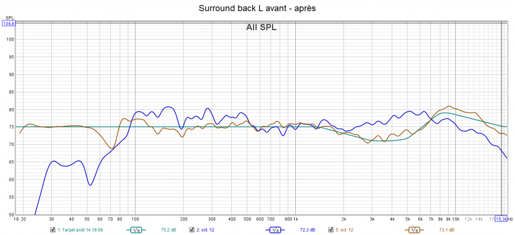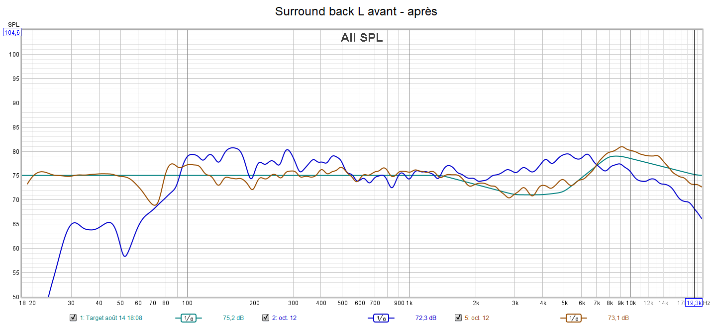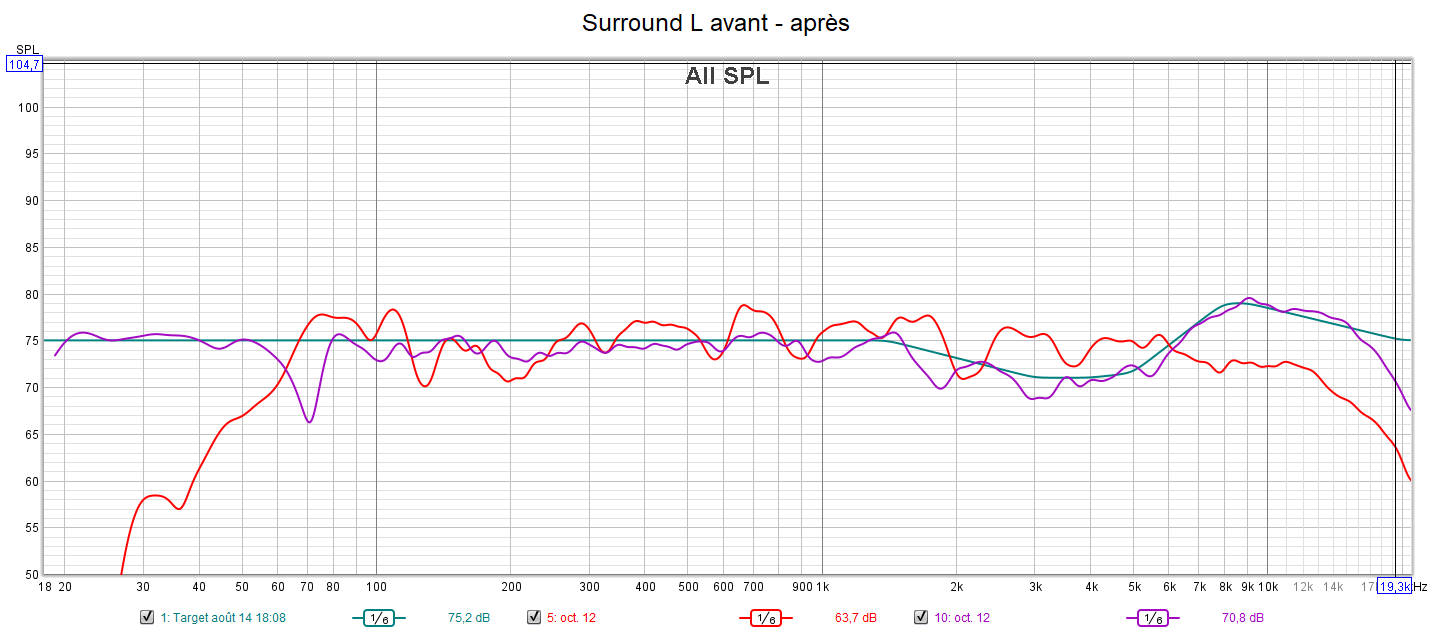 Ci-dessous la correction de la frontale gauche, la centrale, la surround gauche, la surround arrière gauche, l’atmos arrière droite et du LFE.