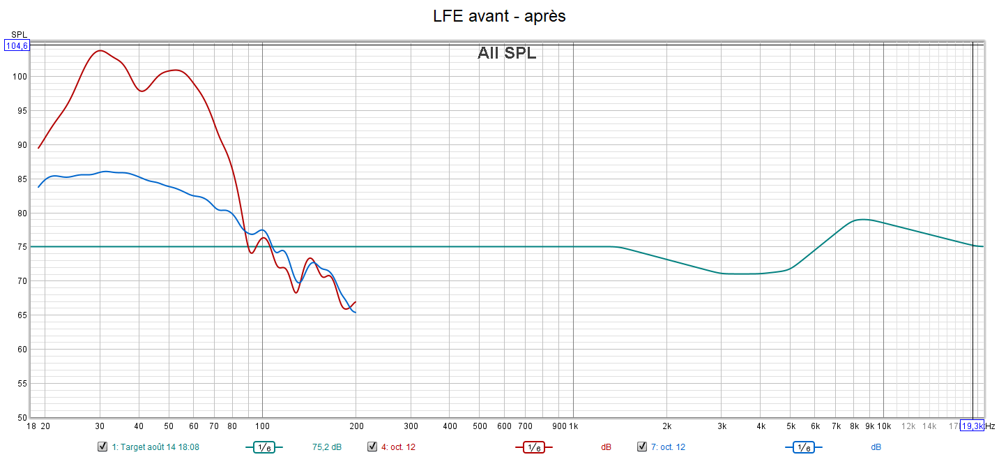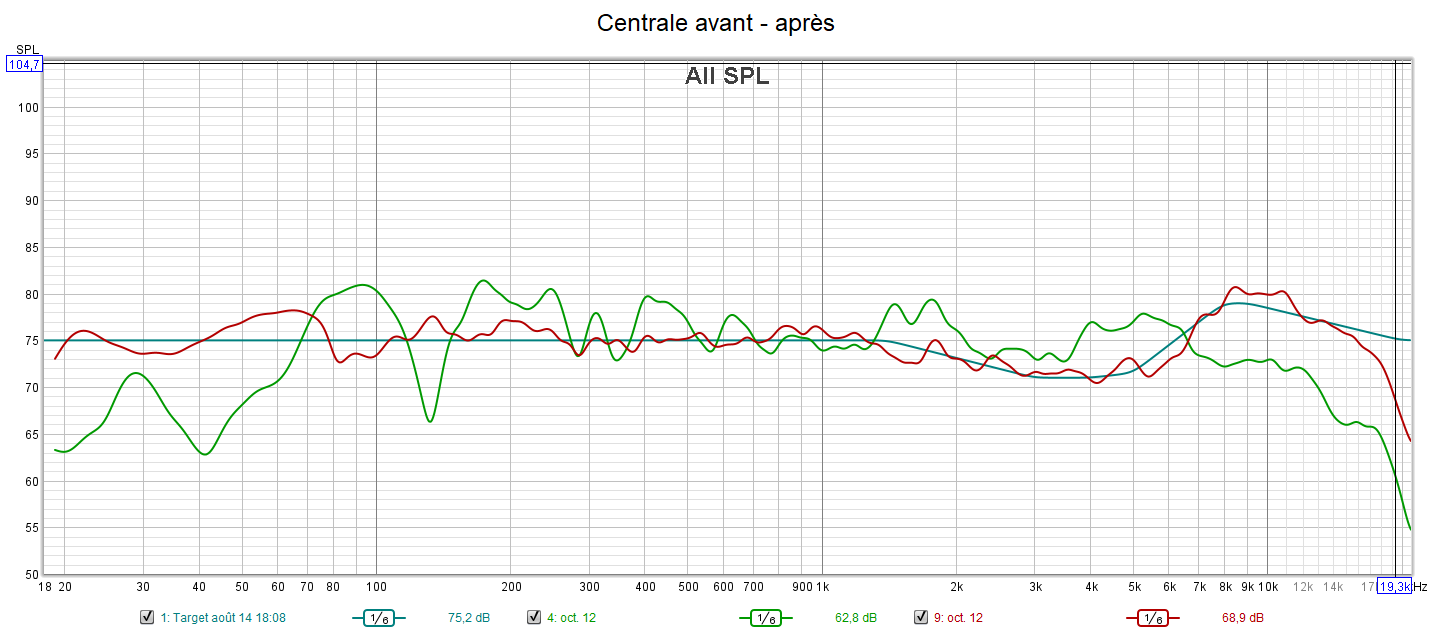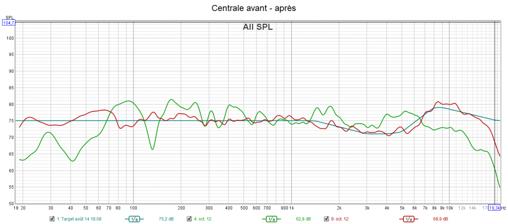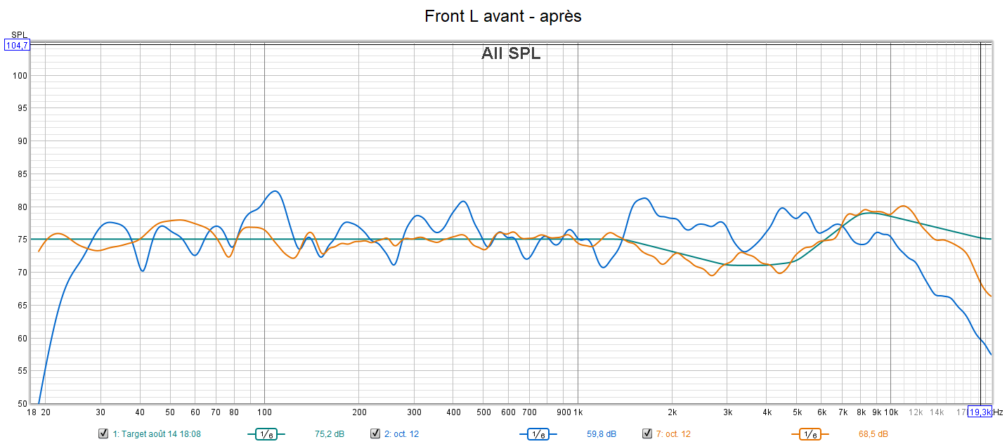 Ci-dessous la correction de la frontale gauche, la centrale, la surround gauche, la surround arrière gauche, l’atmos arrière droite et du LFE.