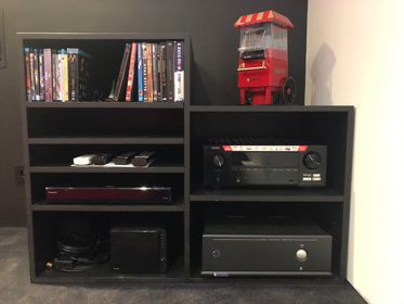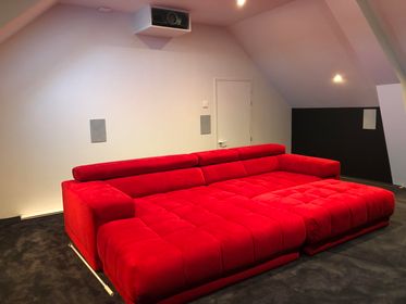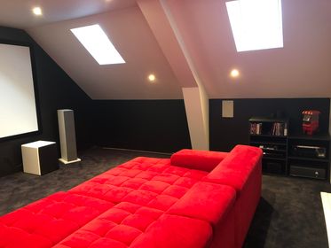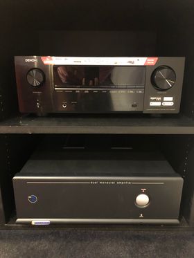 Calibrage 7.1 et 2.0 sur ampli Denon AVC-X3800H avec ampli Proceed HPA2 en salle dédiée. Les colonnes sont des B&W 603 S2. Elles ont leur intérêt ici car le propriétaire fait de l’écoute en 2.0. Les autres enceintes sont des encastrés Focal : 100 IWLCR5 pour la centrale et 100 IW6 pour les surrounds. Caisson XTZ 12.17 pour le grave.