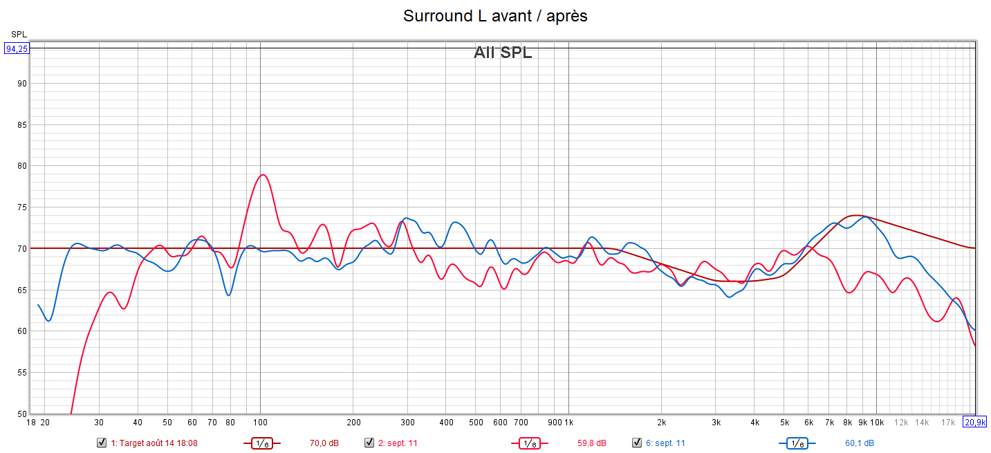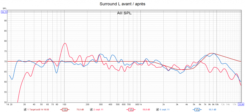 Ci-dessous la correction des frontales droite et gauche, la centrale, la surround gauche, l’atmos avant droite et le LFE.