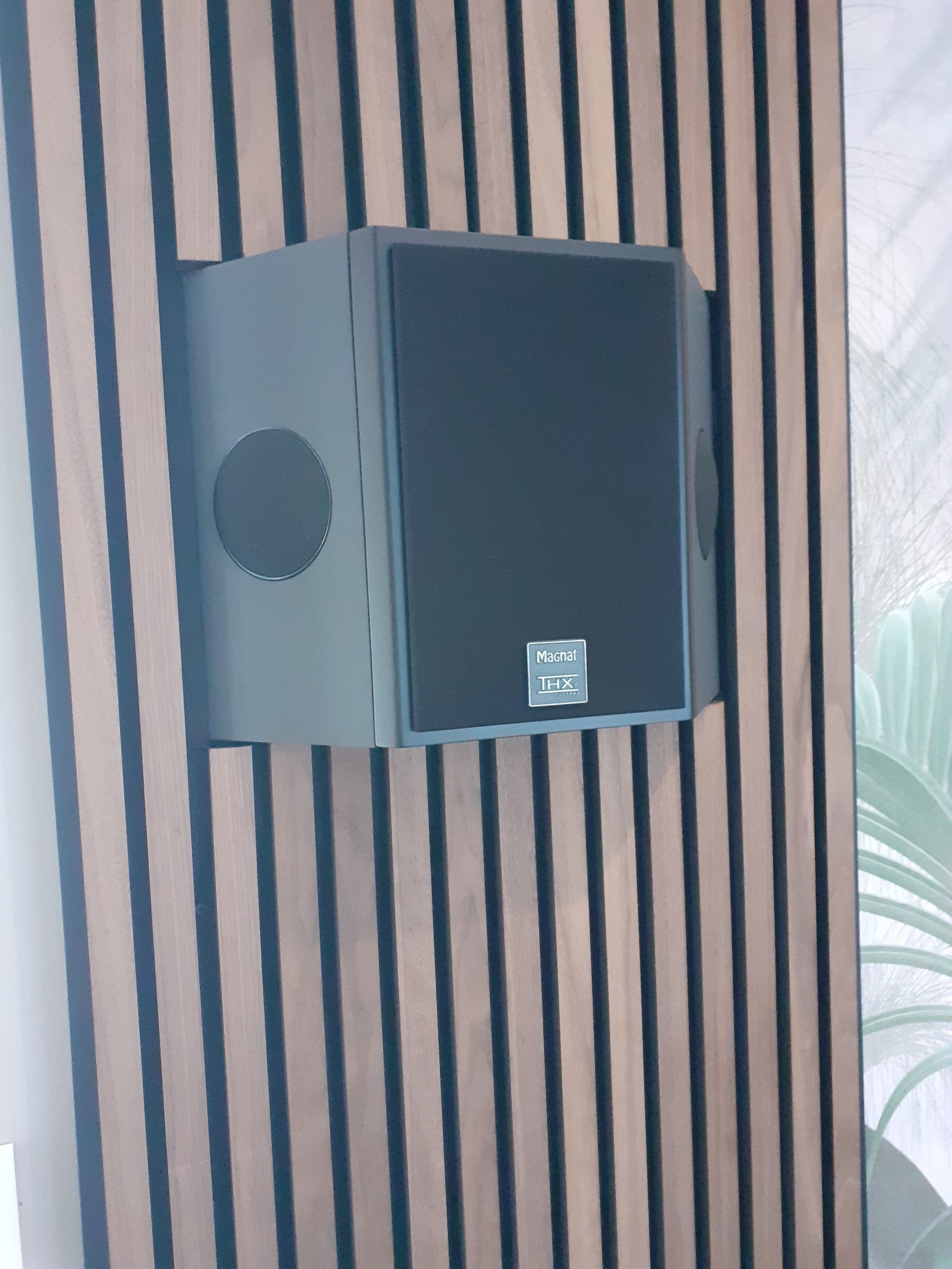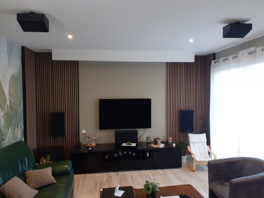 Calibrage son 7.1.4 sur ampli Denon AVC-X4700H en pièce semi-dédiée. Le pack d’enceintes est presque entièrement en Magnat THX avec les LCR100 pour la scène frontale. Seules les surround back sont des Paradigm. Le caisson est un XTZ 1×12. Deux blocs Atoll sont là pour la puissance, un AV100 et un AM100.