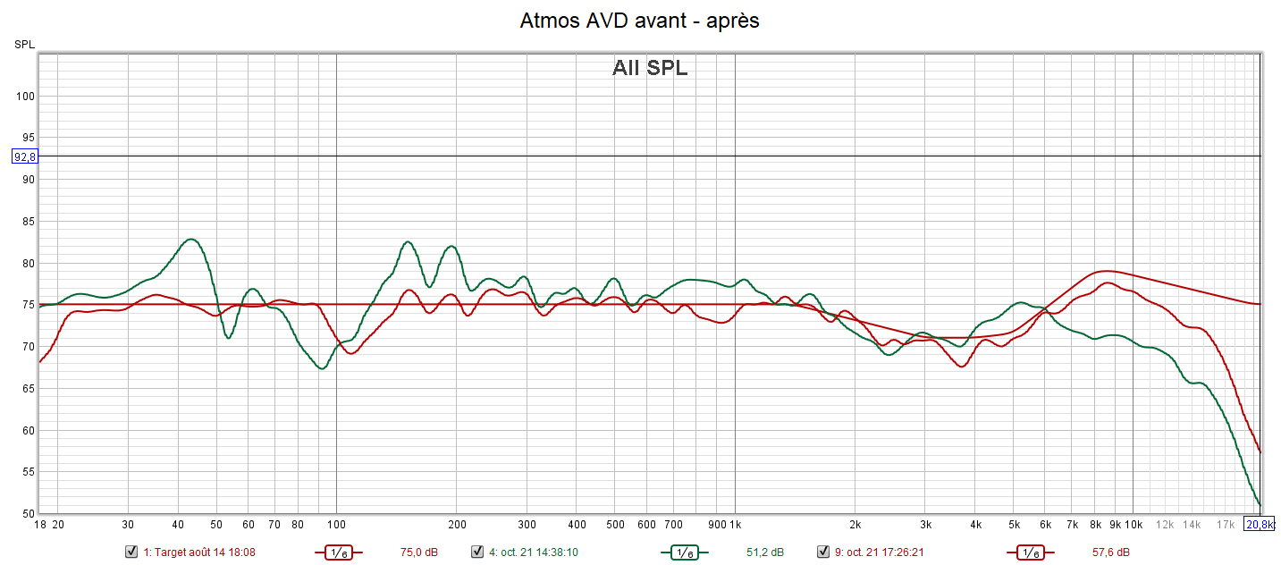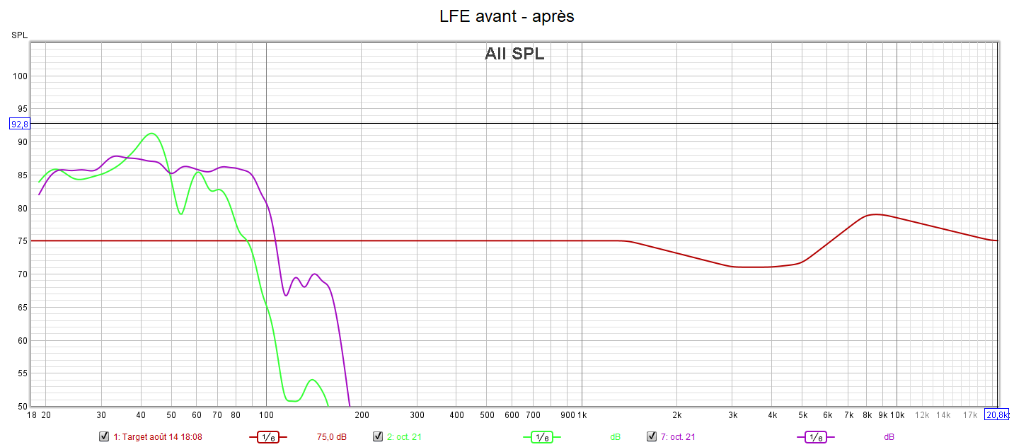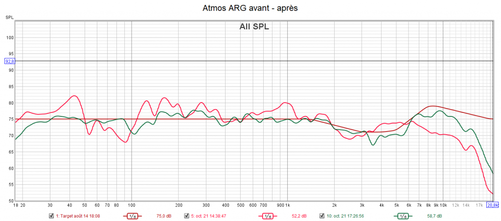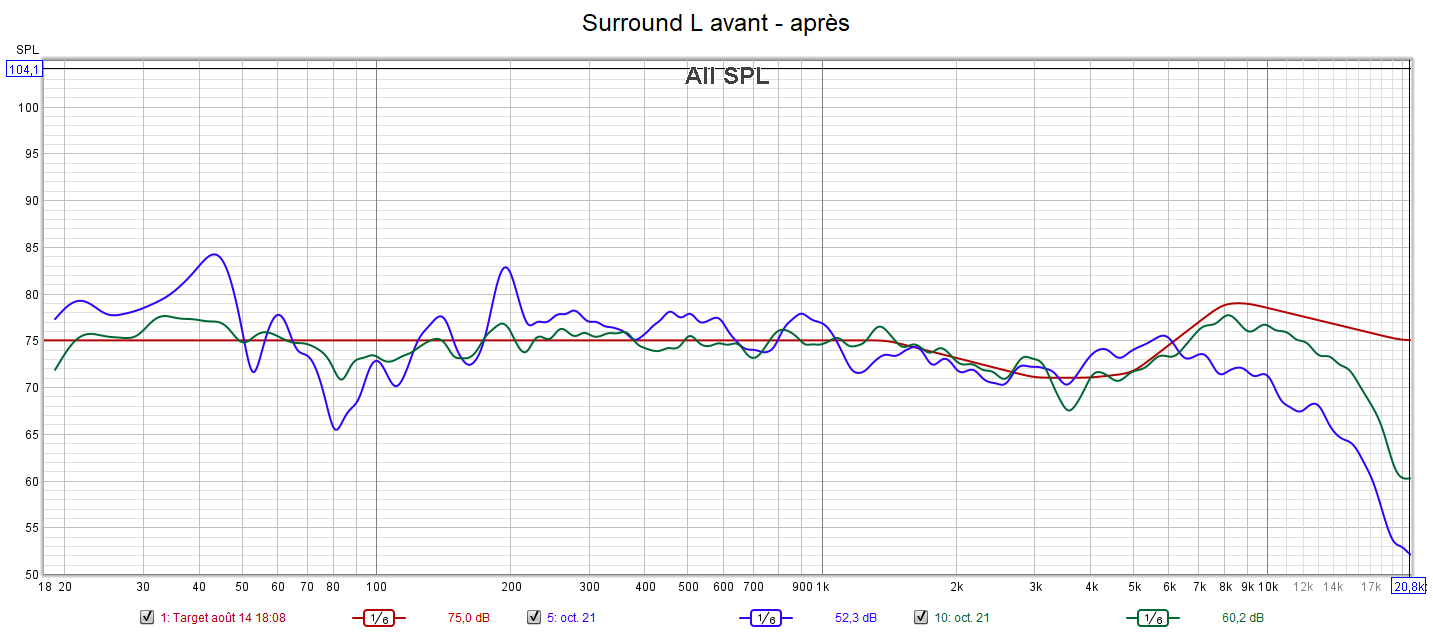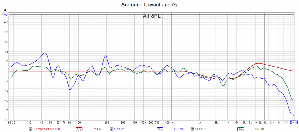 Ci-dessous, la correction de la frontale gauche, la centrale, la surround gauche, l’atmos avant droite, l’atmos arrière gauche et le LFE.
