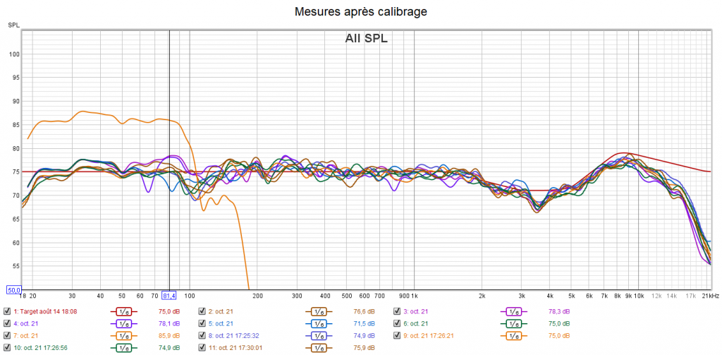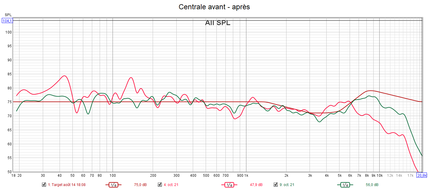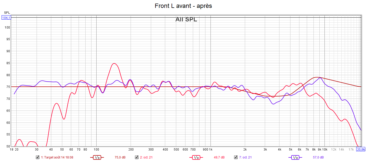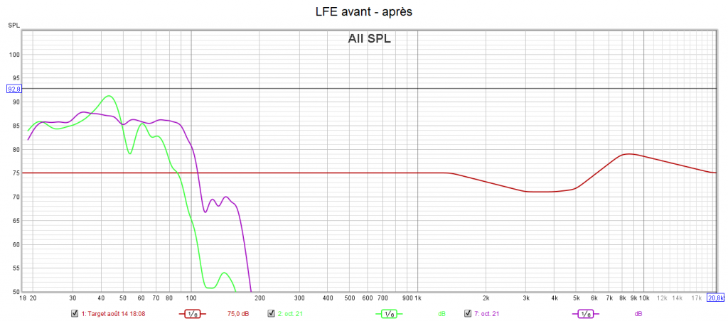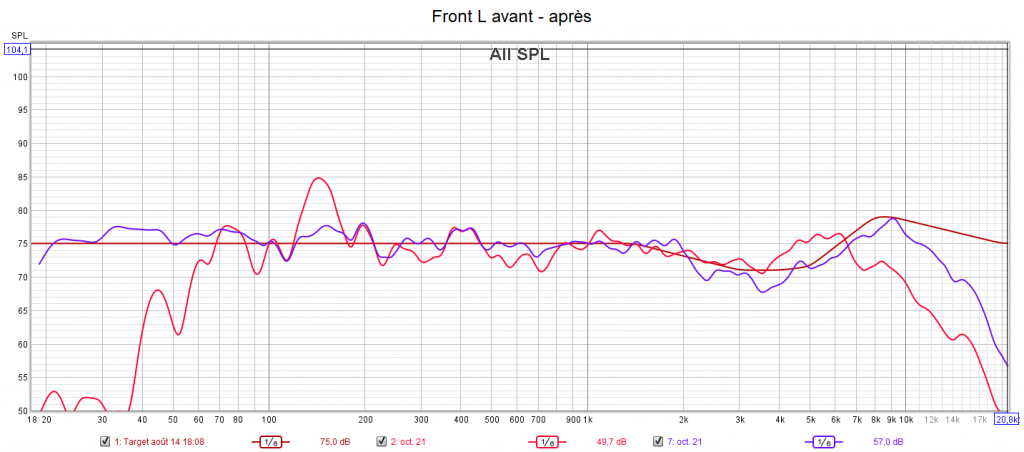 Ci-dessous, la correction de la frontale gauche, la centrale, la surround gauche, l’atmos avant droite, l’atmos arrière gauche et le LFE.