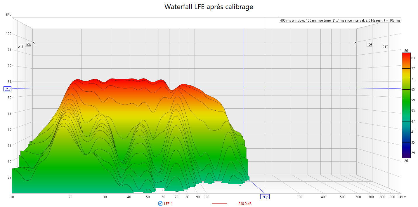 Après calibrage, J’ai pu corriger le retard du LFE en augmentant sa distance. 𝗦𝘂𝗶𝘁𝗲 𝗮̀ 𝗰𝗲𝗹𝗮, 𝗶𝗹 𝗮 𝗳𝗮𝗹𝗹𝘂 𝗶𝗻𝘃𝗲𝗿𝘀𝗲𝗿 𝘀𝗮 𝗽𝗼𝗹𝗮𝗿𝗶𝘁𝗲́ (𝗲𝗻𝘁𝗿𝗲 𝗮𝘂𝘁𝗿𝗲) 𝗽𝗼𝘂𝗿 𝗼𝗯𝘁𝗲𝗻𝗶𝗿 𝗱𝗲 𝗯𝗼𝗻 𝗰𝗿𝗼𝘀𝘀𝗼𝘃𝗲𝗿 𝗮𝘃𝗲𝗰 𝗹𝗲𝘀 𝗲𝗻𝗰𝗲𝗶𝗻𝘁𝗲𝘀. Ce qu’on constate sur les ondelettes de la centrale.