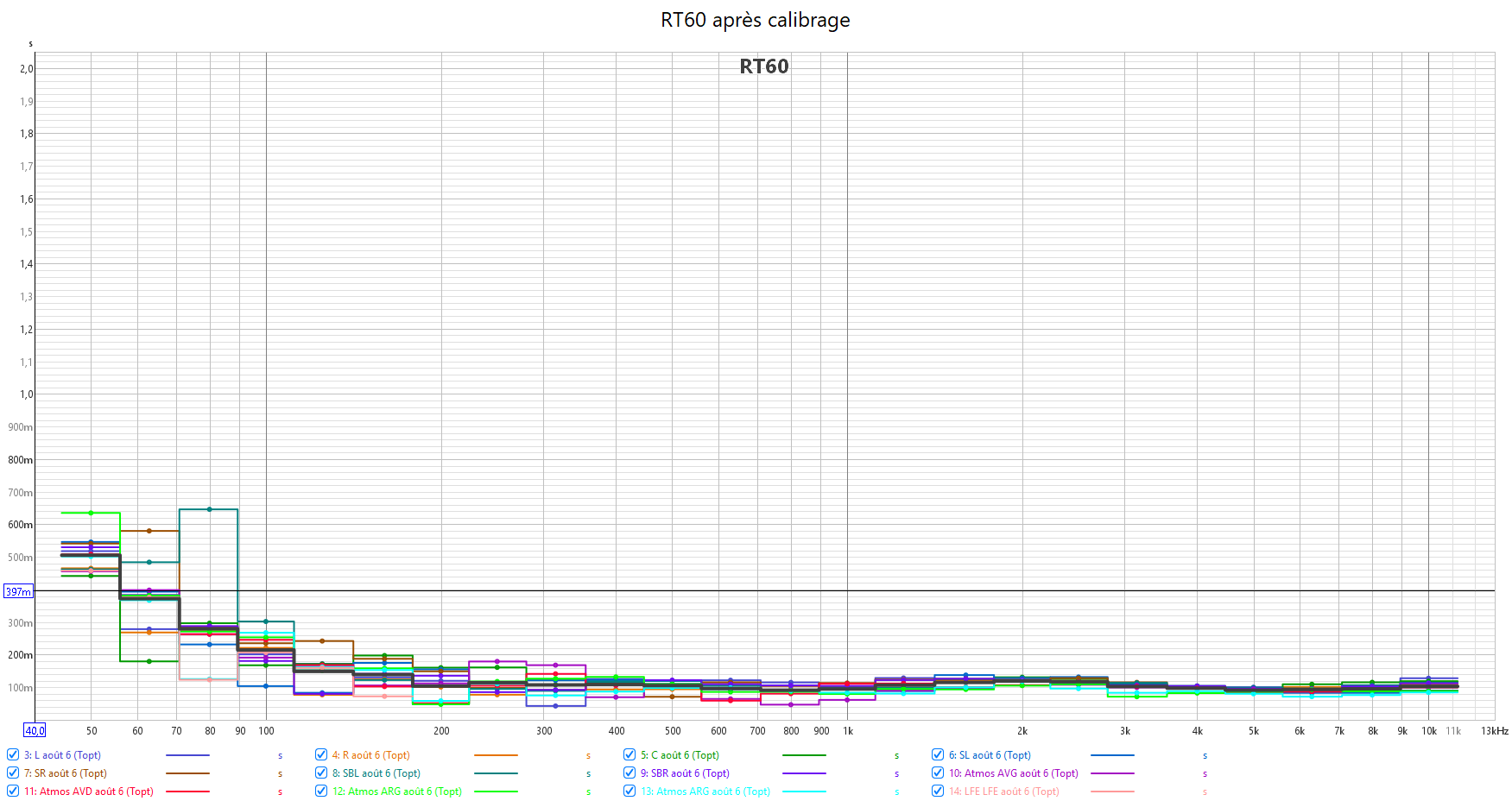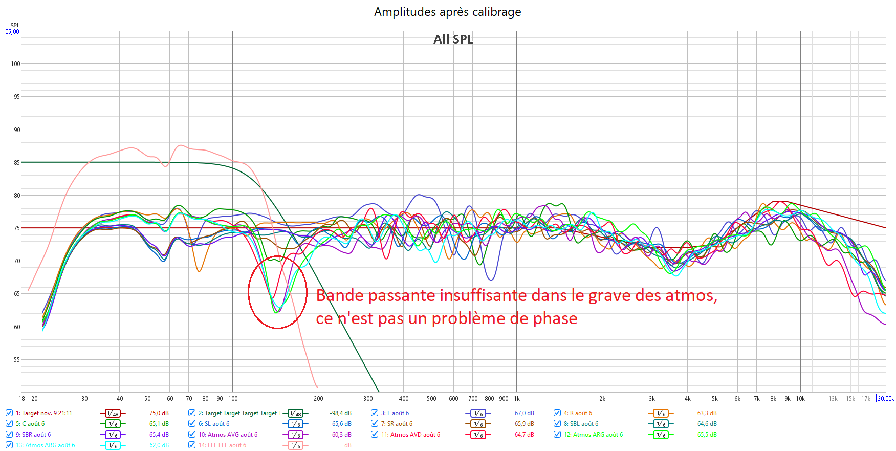Pour l’atmos avant droite, la bande passante réduite dans le grave des atmos ne permet pas un bon raccord avec le LFE.