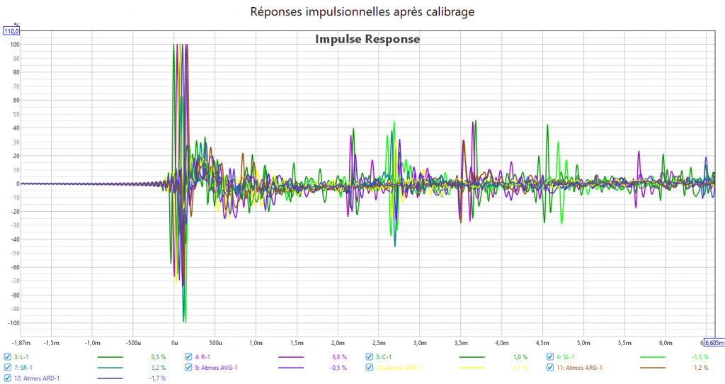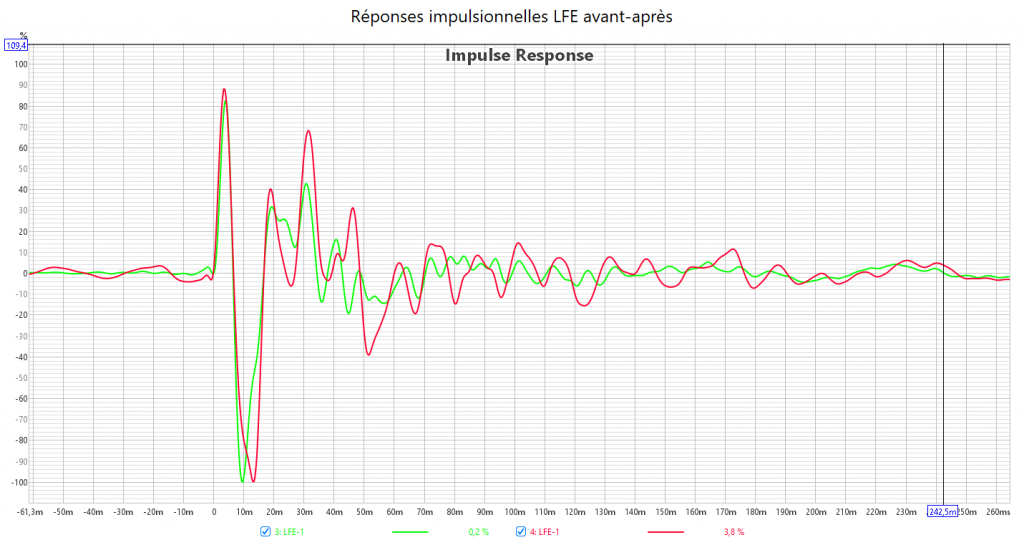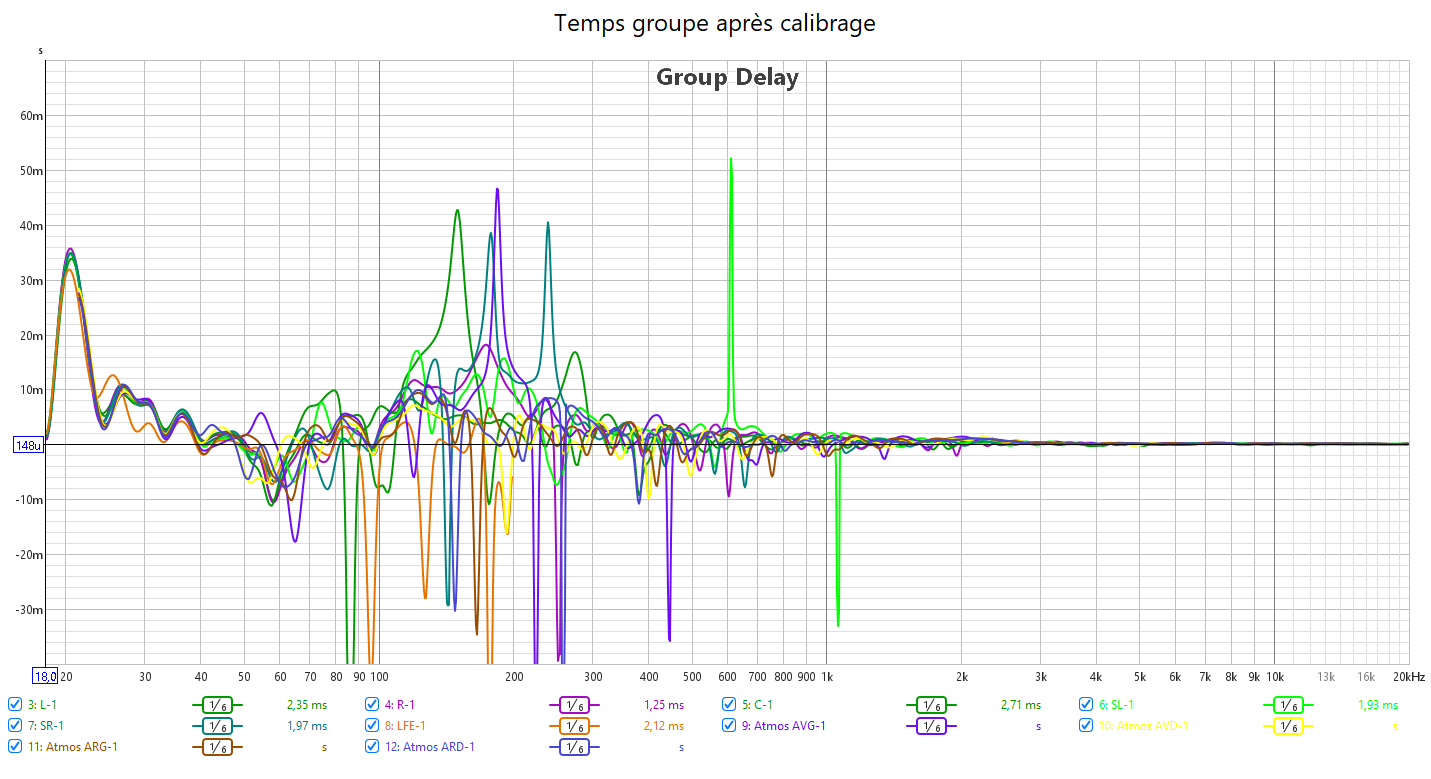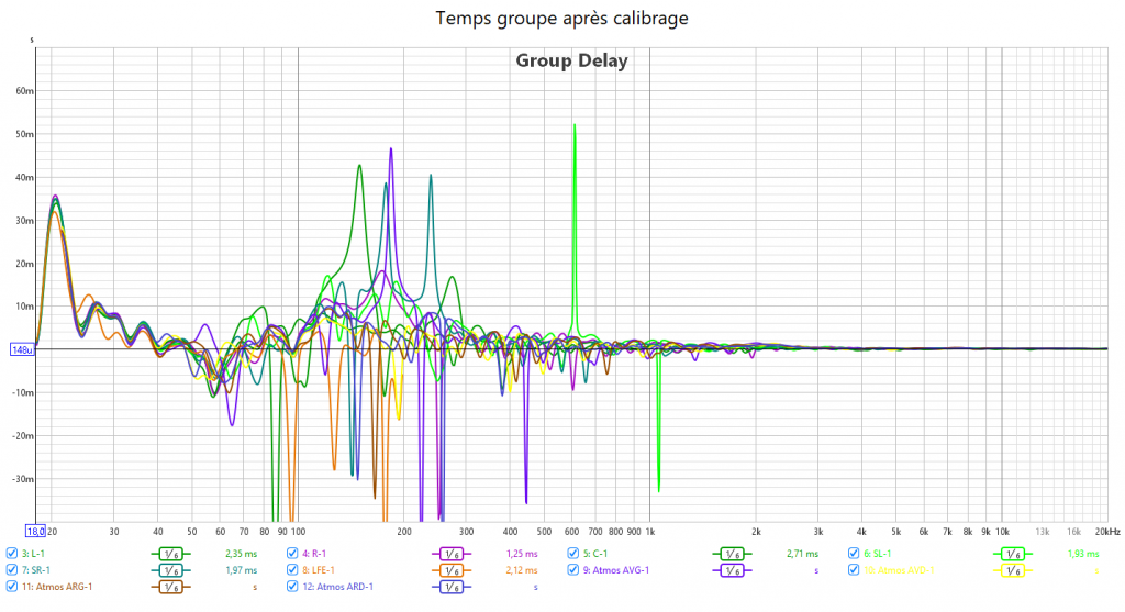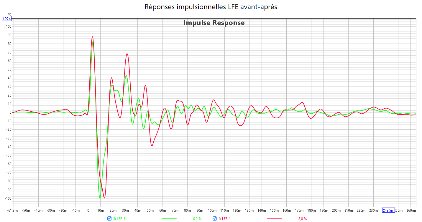 Après calibrage, j’ai compensé le retard du LFE en augmentant la distance du Sub qui est toujours plus élevée que le distance réel. Le temporel dans le grave est bien meilleur.