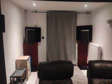 Calibrage son 7.2.2 sur ampli Denon AVR-X4500H avec ampli Emotiva gen5 en pièce dédiée avec traitement acoustique. Nous avons un kit Magnat THX pour les 7 enceintes et un kit ICQ82 de la même marque pour les 4 atmos. Pour les 2 caissons SVS, on a un PB1000 Pro et un PB12 NSD.