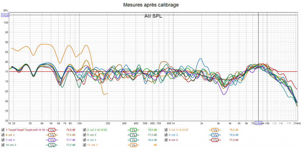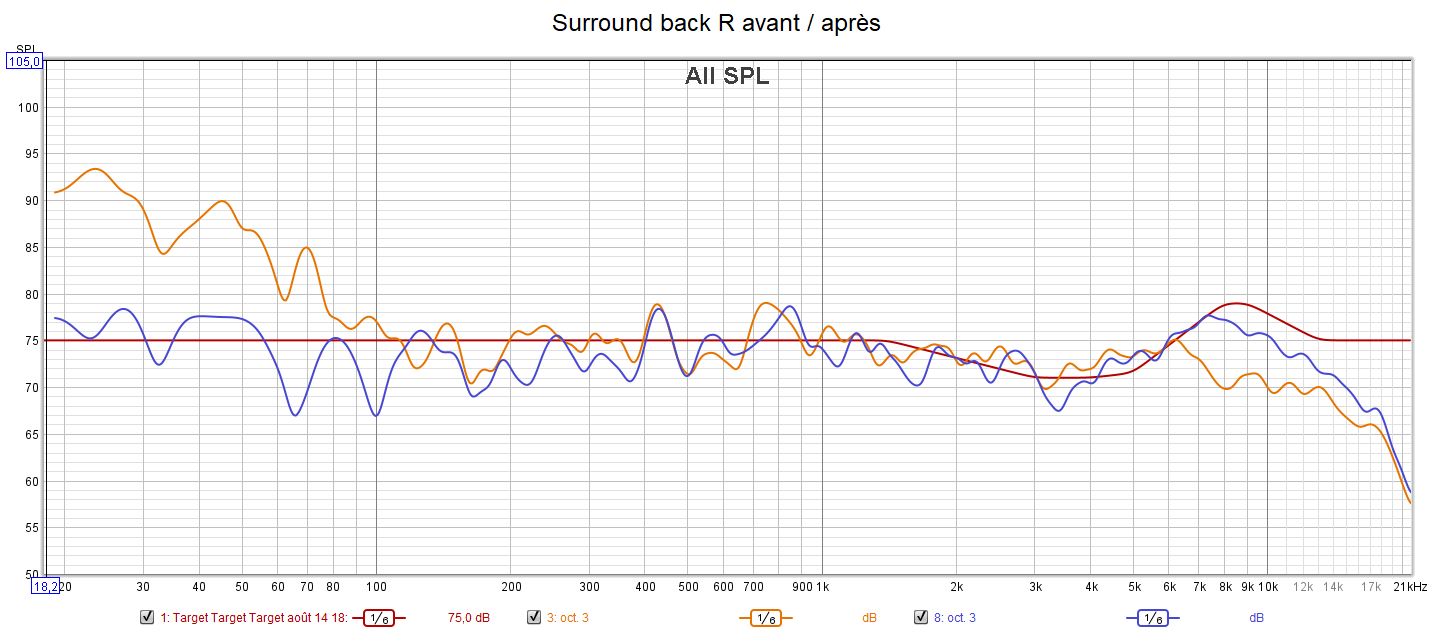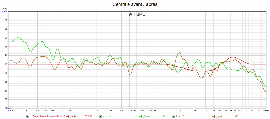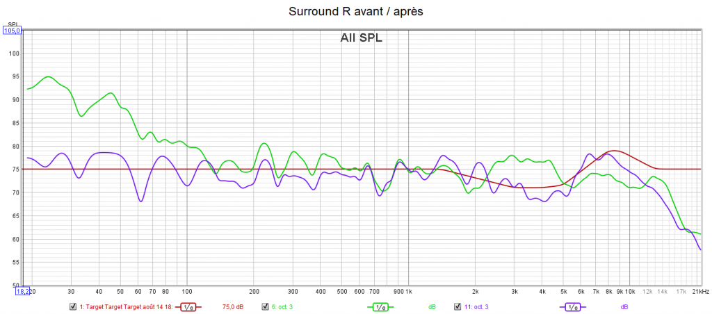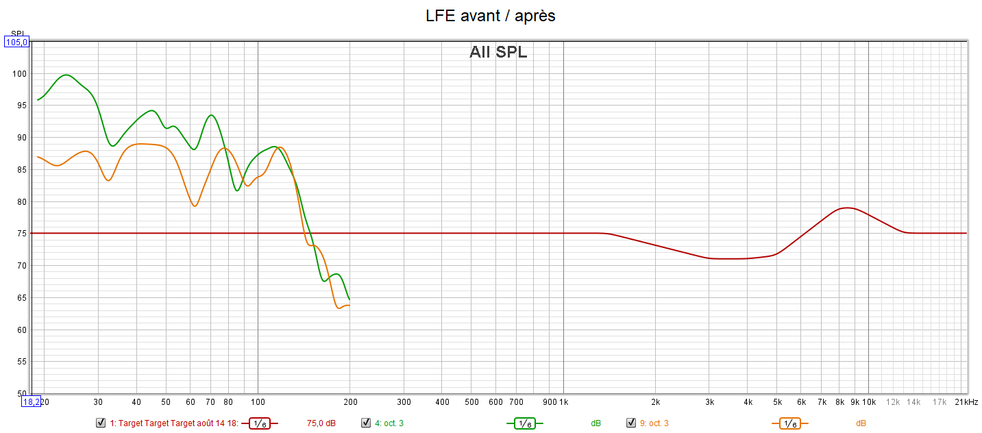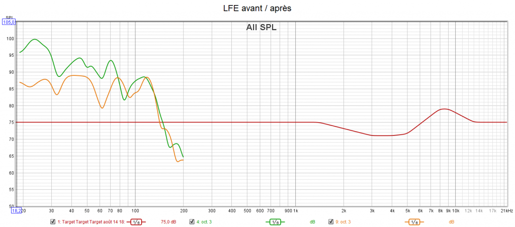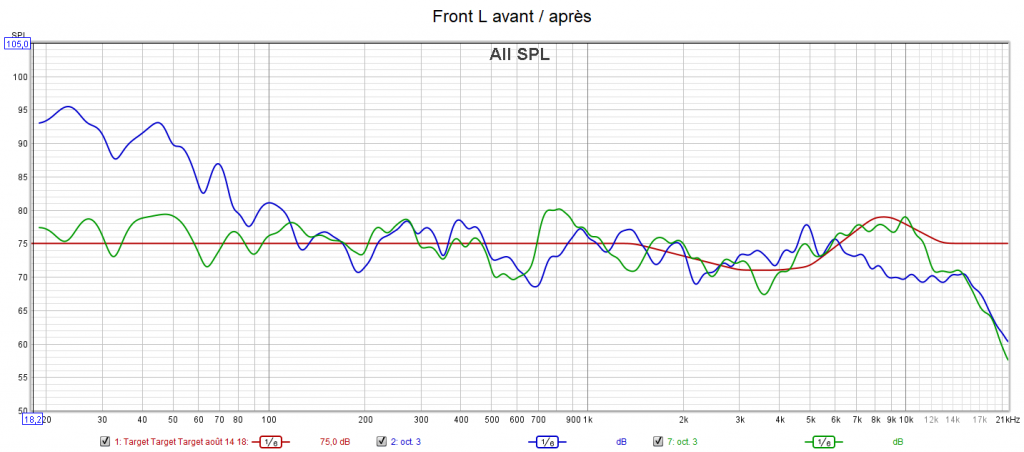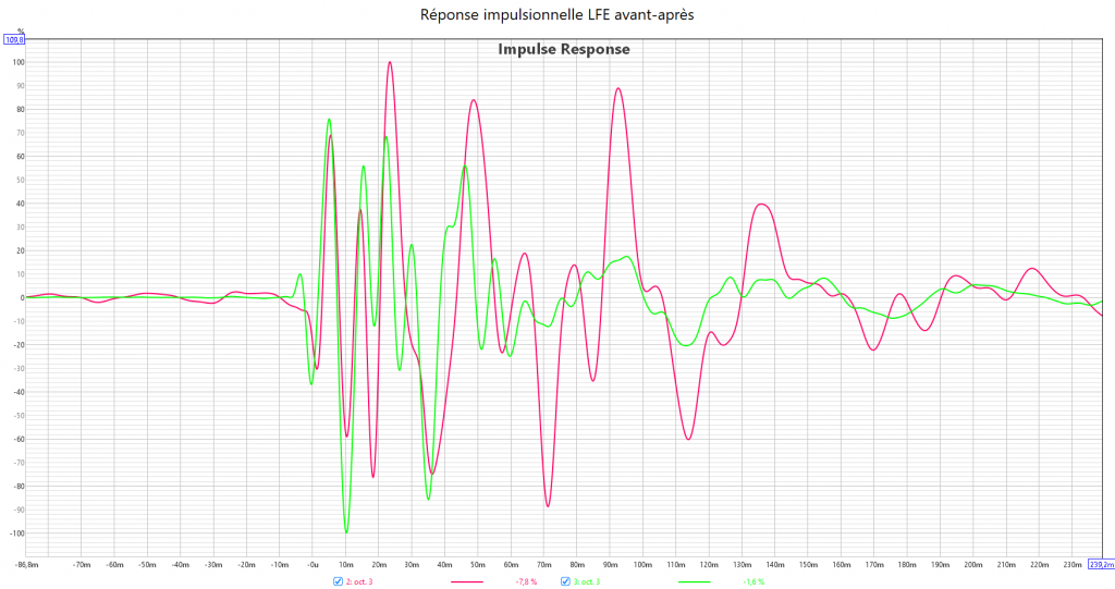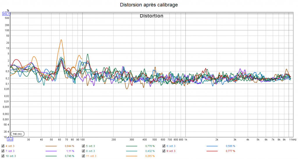 Après calibrage, les caissons sont mis en phase (chose que ne sait pas faire Audyssey). La réponse dans le grave est améliorée. La distorsion dans le grave est bien mieux qu’avant calibrage.