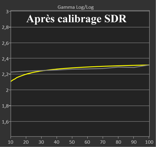 Le gamma détermine en grande partie le bon contraste de l’image. Un gamma trop bas crée une image délavée, laiteuse, avec un voile blanc. Un gamma trop haut va donner une image d’apparence sombre. La norme est basée sur un gamme à 2,4 qui s’ajuste en fonction des capacités de l’afficheur et des conditions de visionnage (luminosité de la pièce).