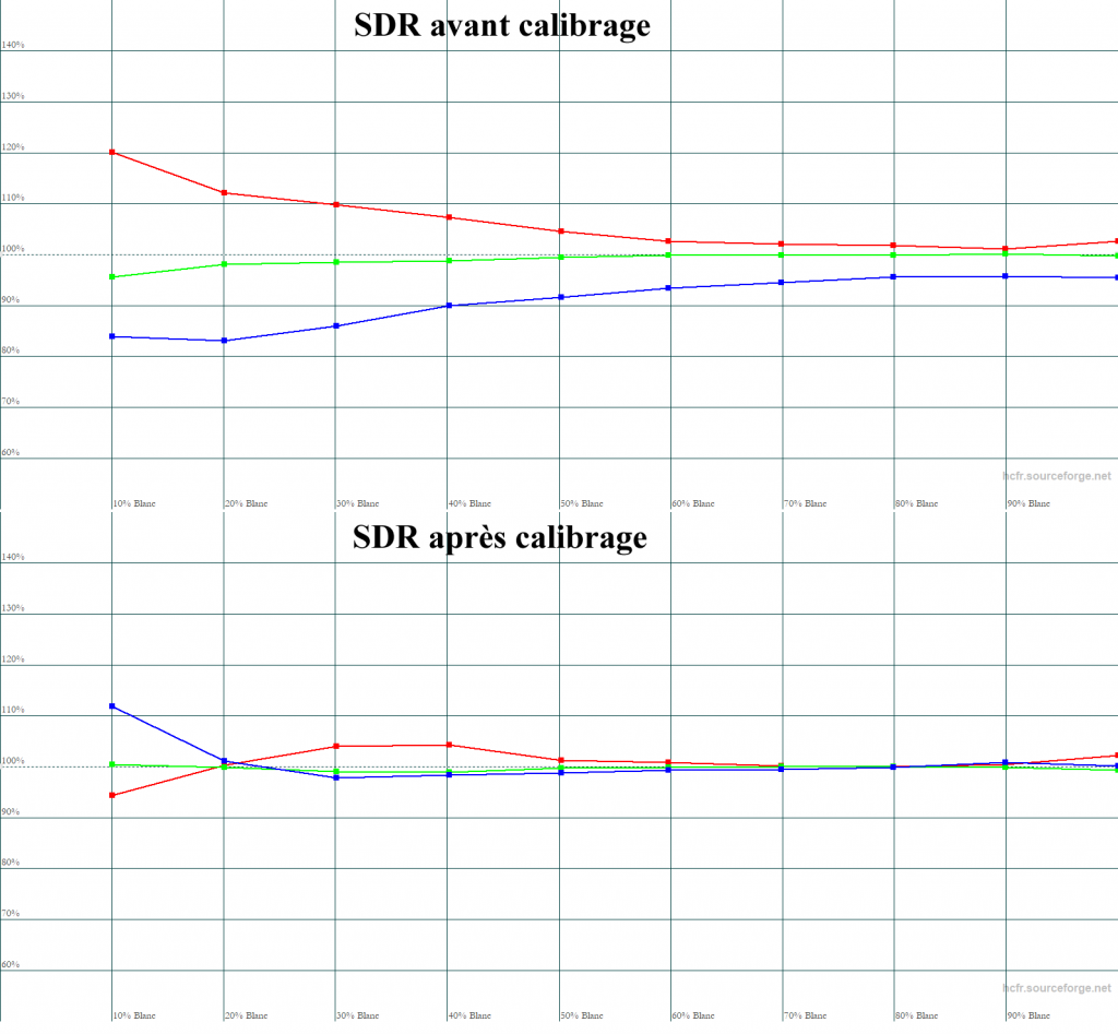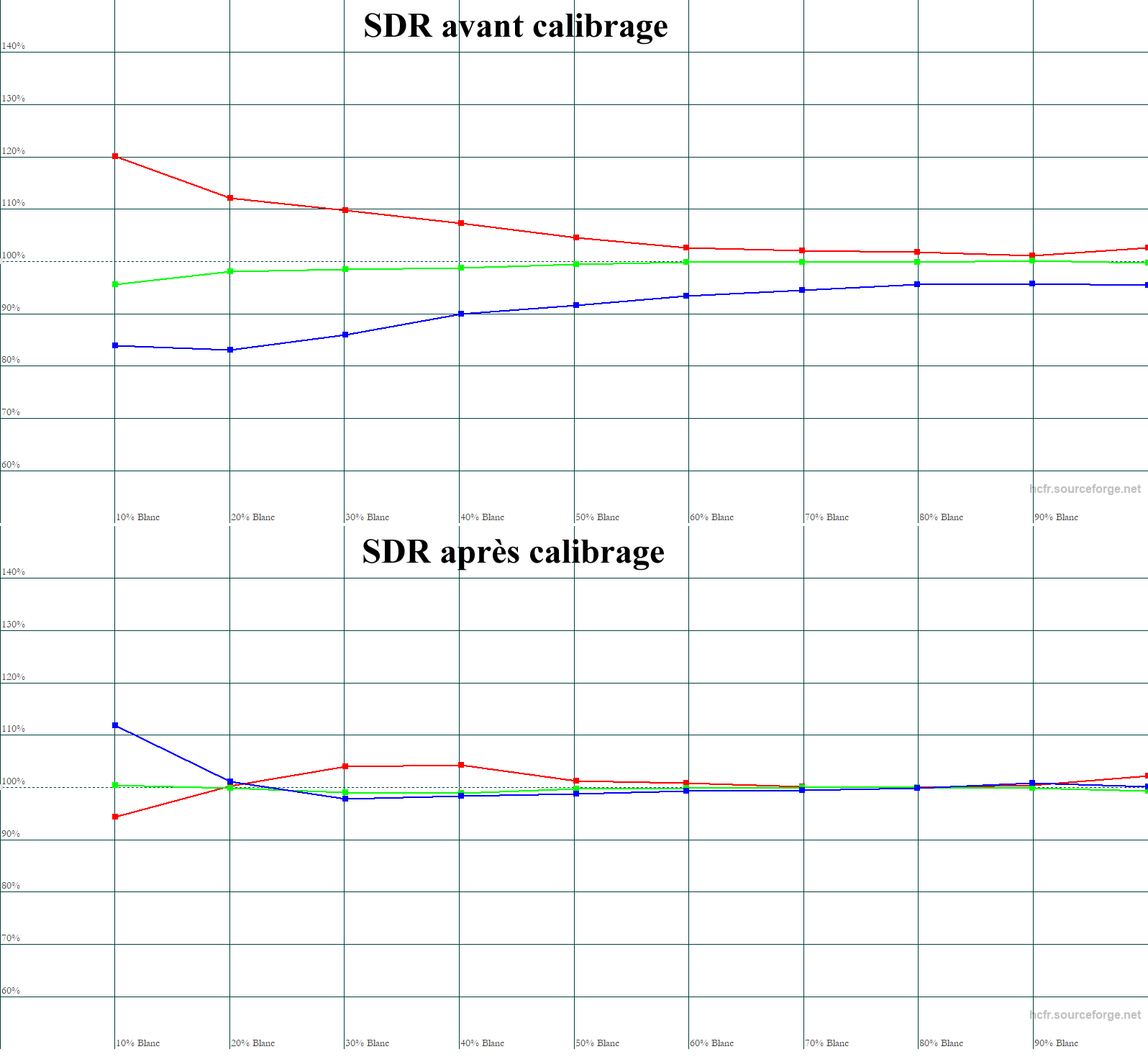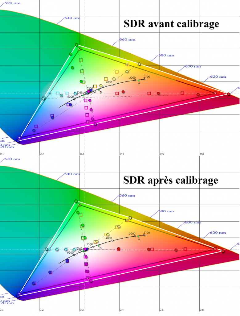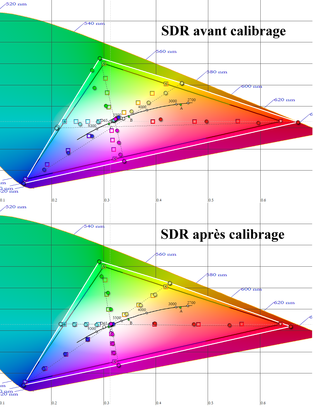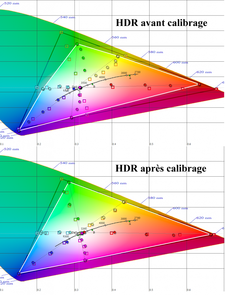 Avant calibrage HDR, les couleurs sont bien moins bonnes qu’en SDR. On a de grosse dérives dans les teintes et des problèmes de saturations.