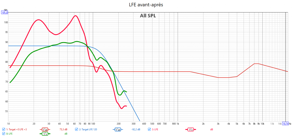 Voici la correction du canal LFE avec Audyssey puis avec les filtre des amplis Crowns XTi 4002.