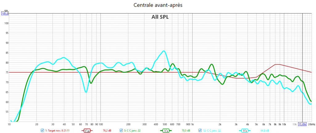 A l’écoute, le gain en clarté (sans agressivité) que j’ai ajusté en fonction du niveau d’écoute donne une bien meilleure scène sonore. Avec des effets sonores mieux localisés, mieux spatialisés, avec du détail. Le grave est plus propre, bien dosé, dans la continuité des enceintes. C’est un gros changement.