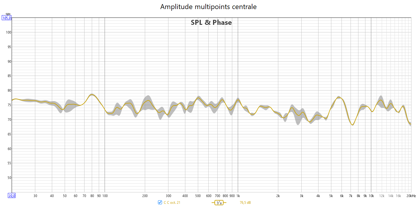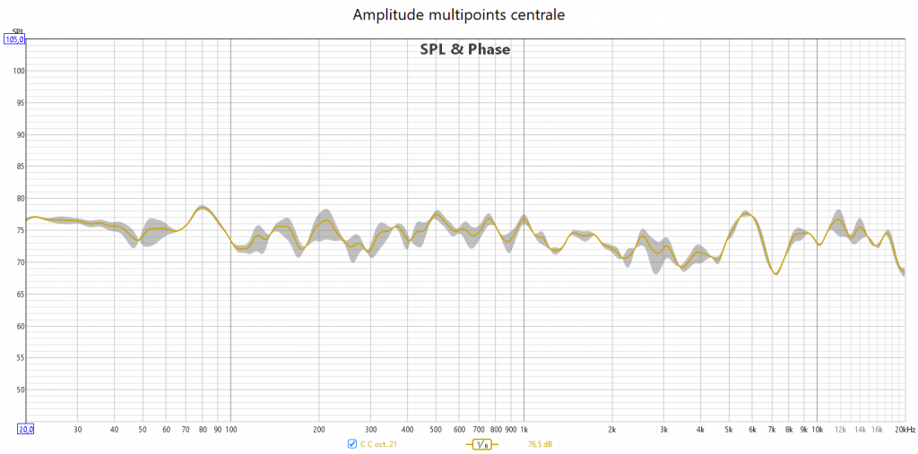 A l’écoute, l’équilibre de la bulle sonore est bien en accord avec les mesures effectuées. Tous les canaux sont bien calibrés au même niveau sonore et assurent un rendu équilibré, clair et bien détaillé, sans agressivité, conséquence direct de la courbe cible utilisée. Cette clarté donne une bonne définition spatiale et un bon placement des effets sonores, également avec les atmos. Le grave est propre, dynamique, sans effet de traînage.
