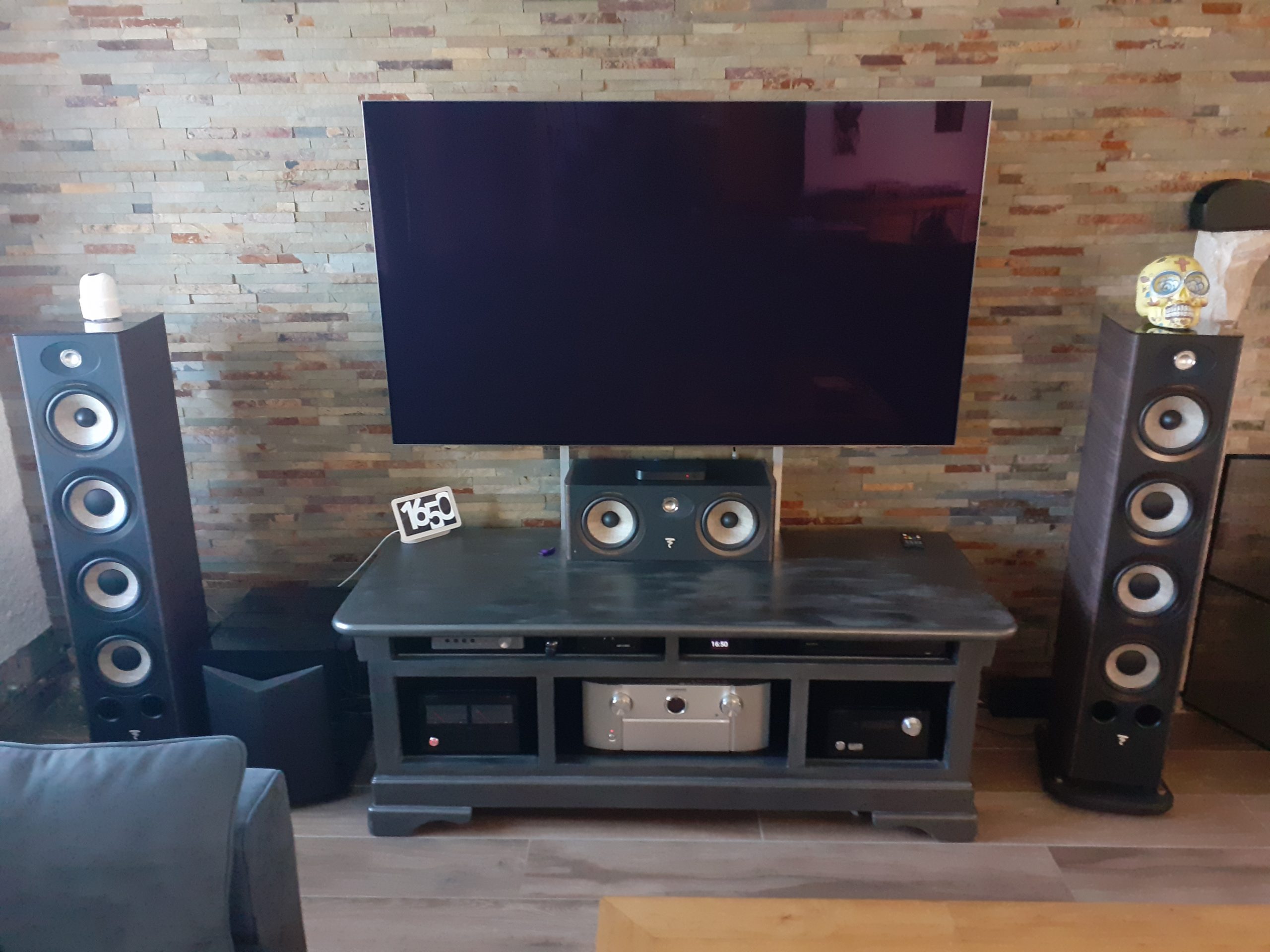 Calibrage son 5.1.4 sur ampli Marantz SR-7015 avec principalement enceintes Focal de la série Aria (936 pour les frontales). On a un caisson Focal également SW700V. Nous sommes en pièce de vie. Après calibrage, un ampli 2 canaux Advance BX1 sera utilisé pour les frontales. Un ajustement des niveaux sera fait. Un ampli ne modifie pas la tonalité.