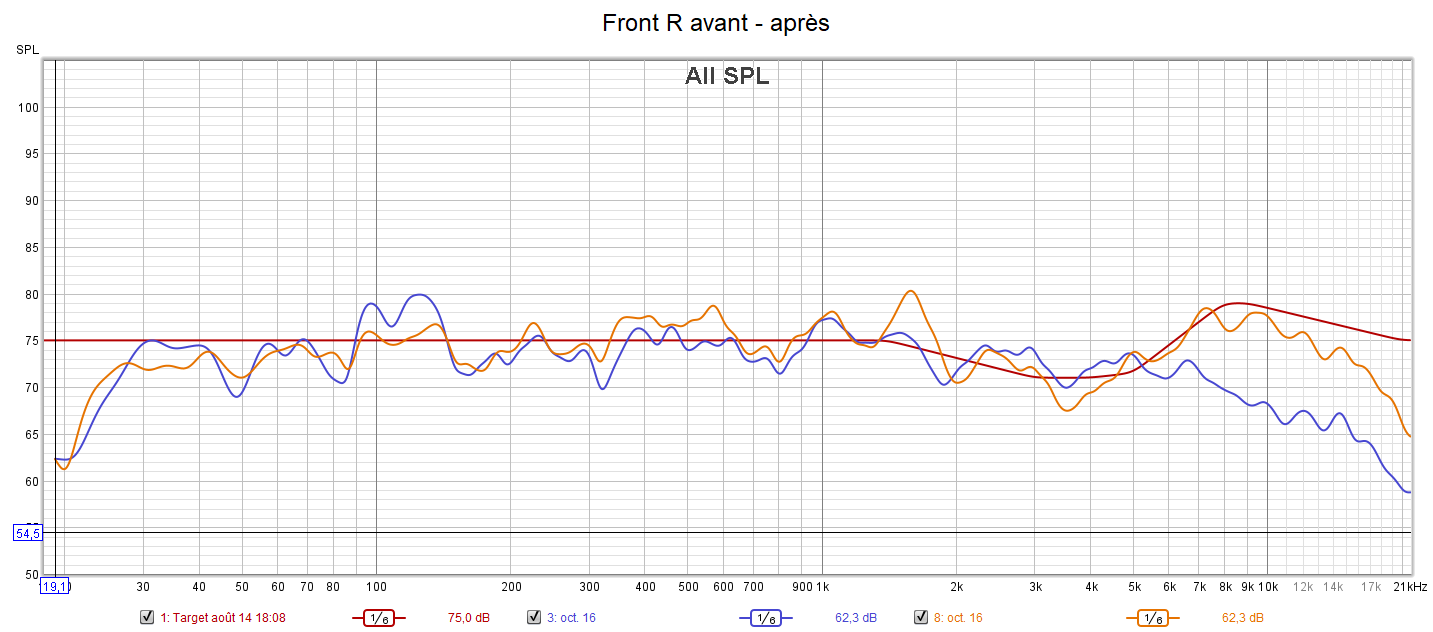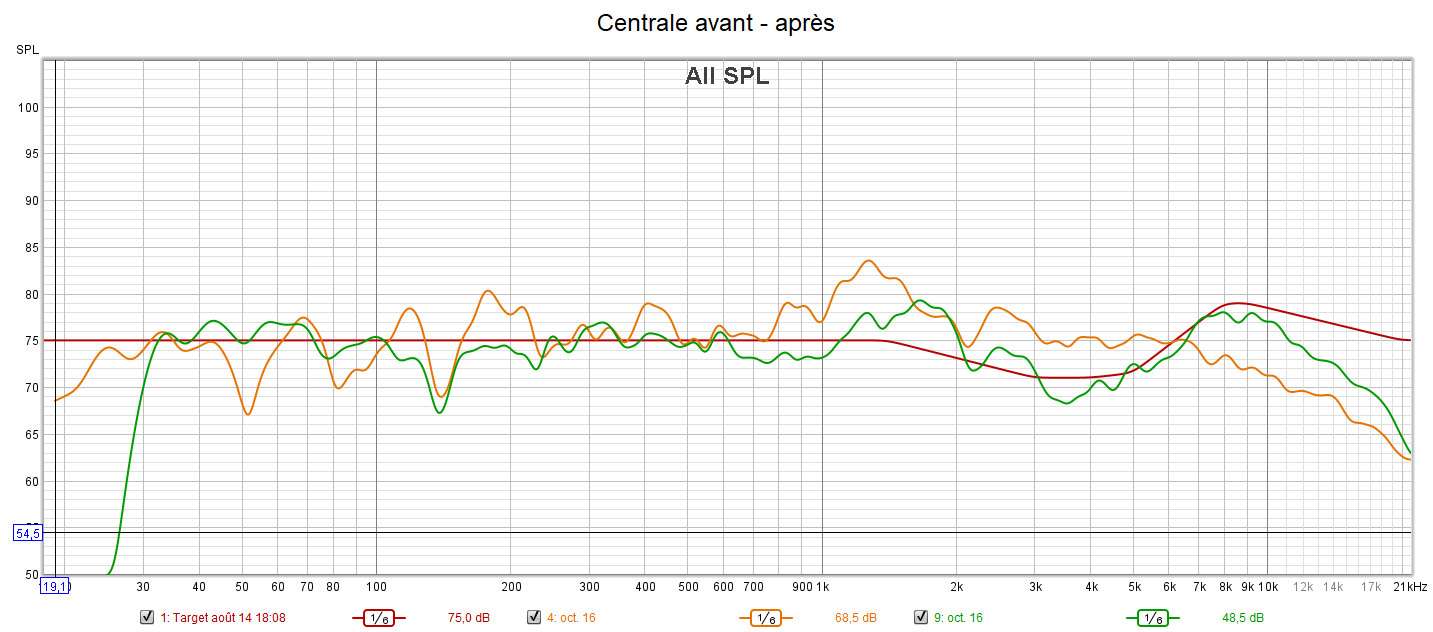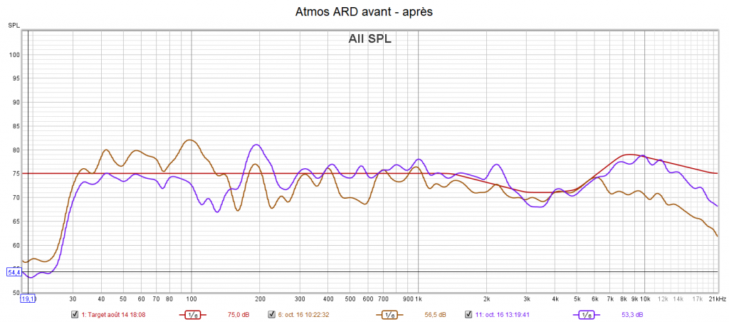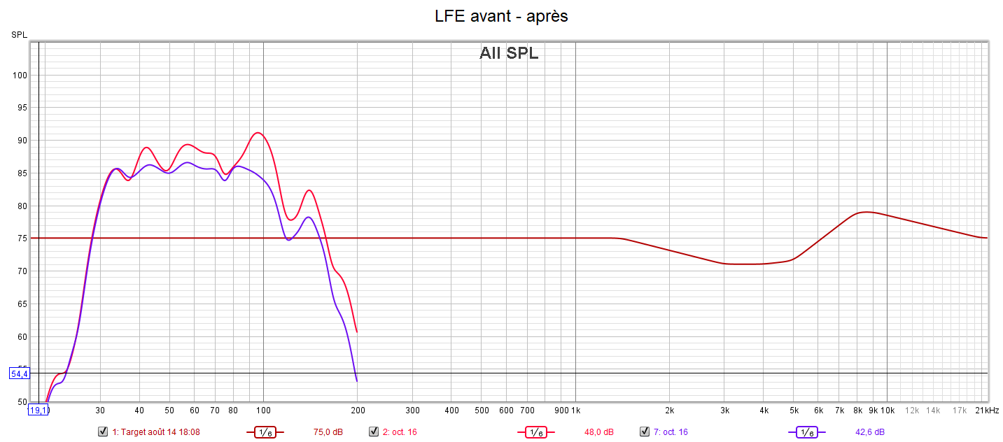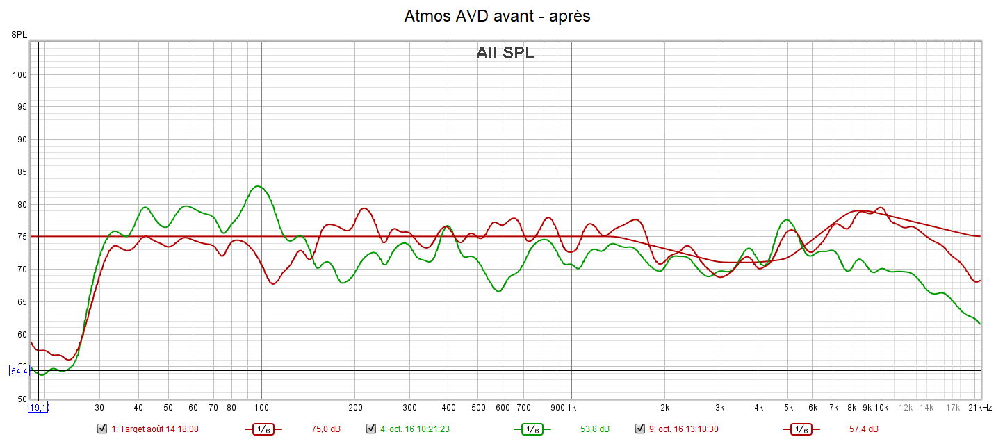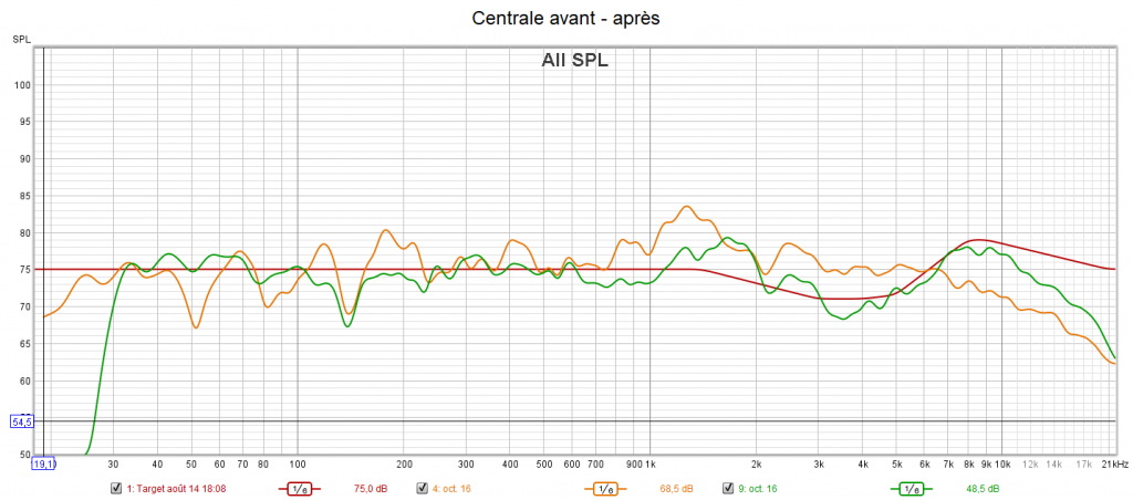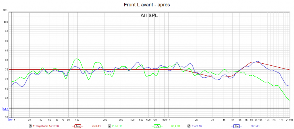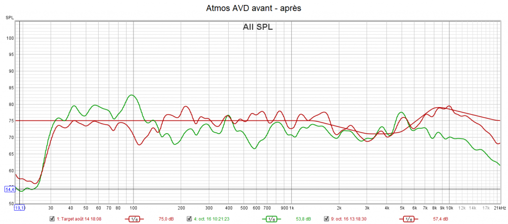 Ci-dessous la correction des frontales, de la centrale, des atmos droite et du LFE.