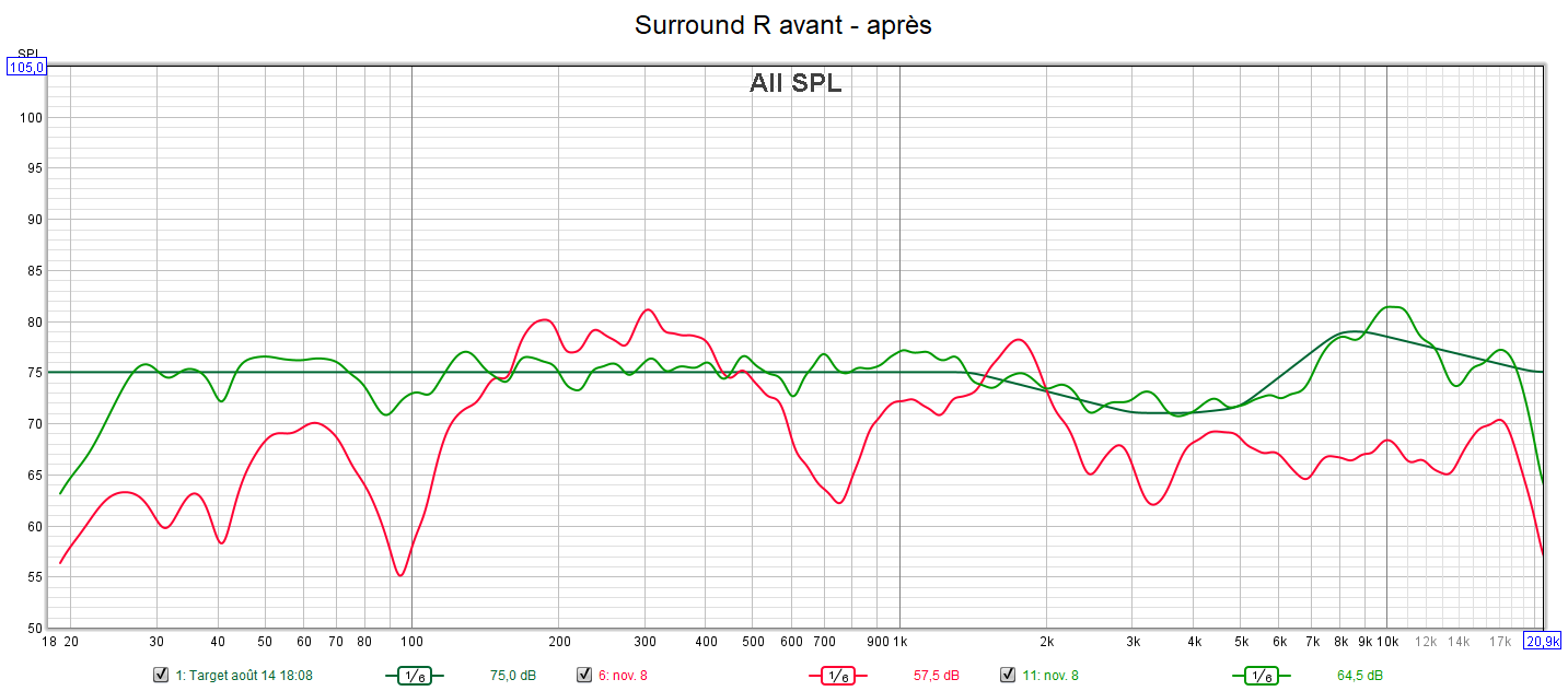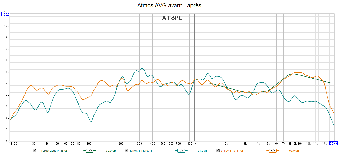 Ci-dessous la correction de la frontale droite, la centrale, la surround droite, des atmos et du LFE.
