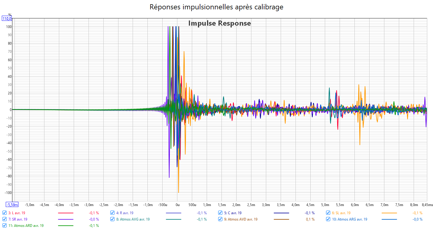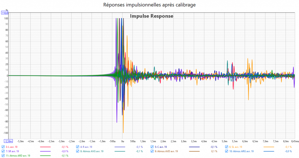 Après calibrage, le calage temporel est dans une fourchette de 0,5 ms. Si c’est mieux qu’avant (1 ms), cela ne va pas faire une grande différence à l’écoute.
